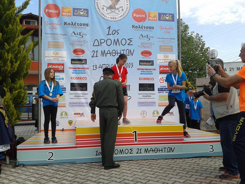 Στο τέλος της διαδρομής δόθηκαν μετάλλια και διπλώματα στους τρεις πρώτους και στις τρεις πρώτες των κατηγοριών αγοριών και κοριτσιών, ενώ μετάλλια δόθηκαν σε όλους τους τερματίσαντες δρομείς των μαθητών Δημοτικού Γυμνασίου.