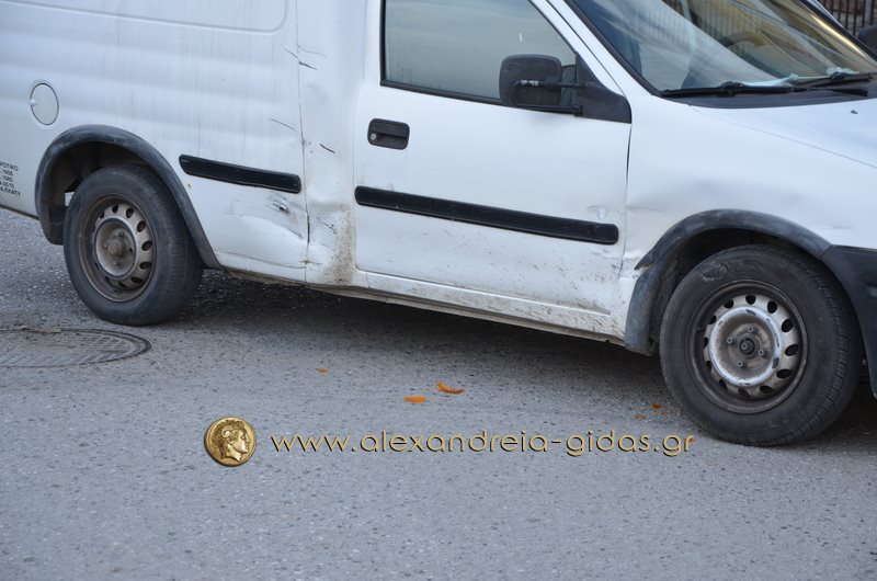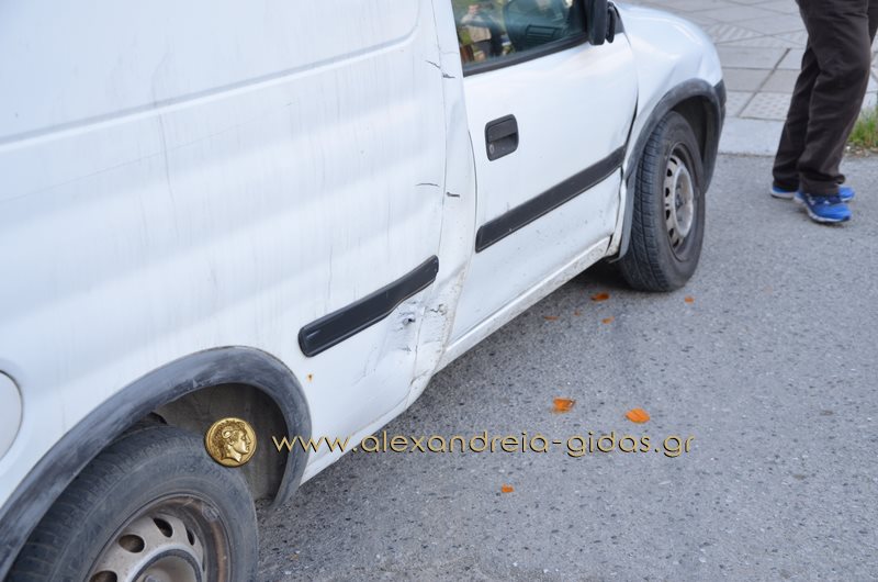 trakaΤροχαίο ατύχημα σημειώθηκε το πρωί της Δευτέρας 11 Απριλίου στη διασταύρωση των οδών Γρ. Λαμπράκη και Θ. Σοφούλη μπροστά στο πρακτορείο ΟΠΑΠ  Ο ΓΙΓΑΣ στην Αλεξάνδρεια.