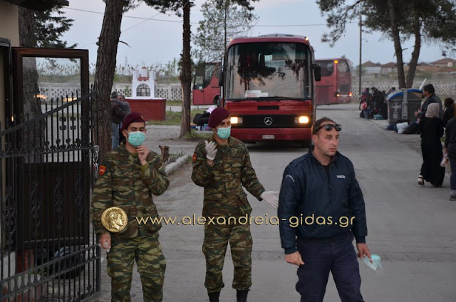busΛίγο πριν τις 8 το βράδυ της Δευτέρας 11 Απριλίου έφτασαν στο στρατόπεδο 722 στην Αλεξάνδρεια δύο (2) ακόμα λεωφορεία με πρόσφυγες.