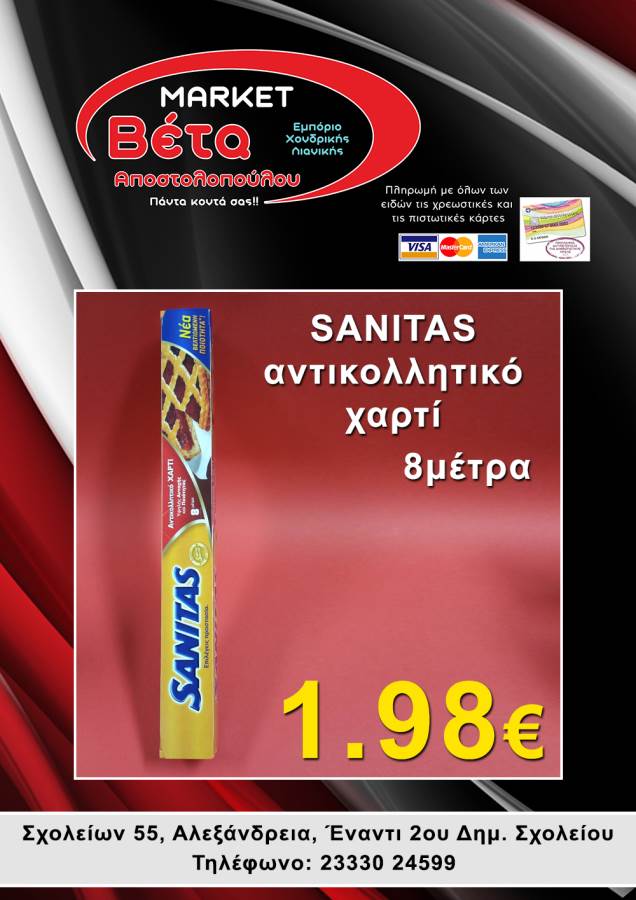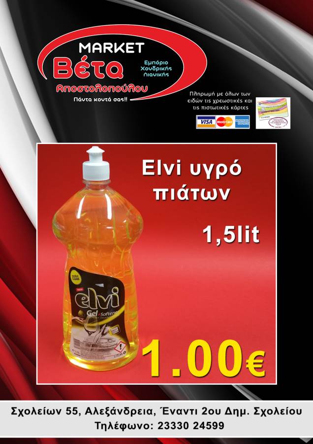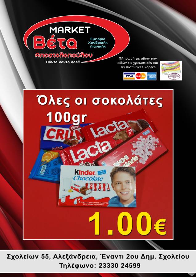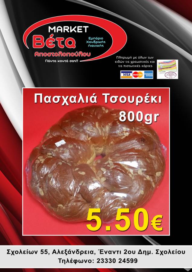 Το μάρκετ ΒΕΤΑ Αποστολοπούλου, βρίσκεται στην οδό Σχολείων 55 στην πόλη μας απέναντι από το 2ο Δημοτικό Σχολείο Αλεξάνδρειας.