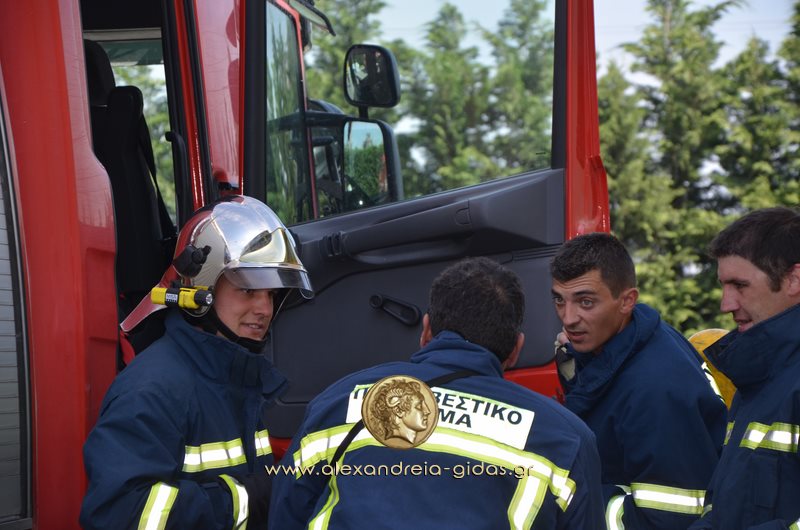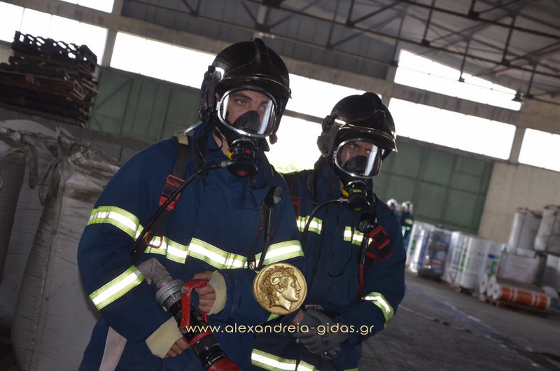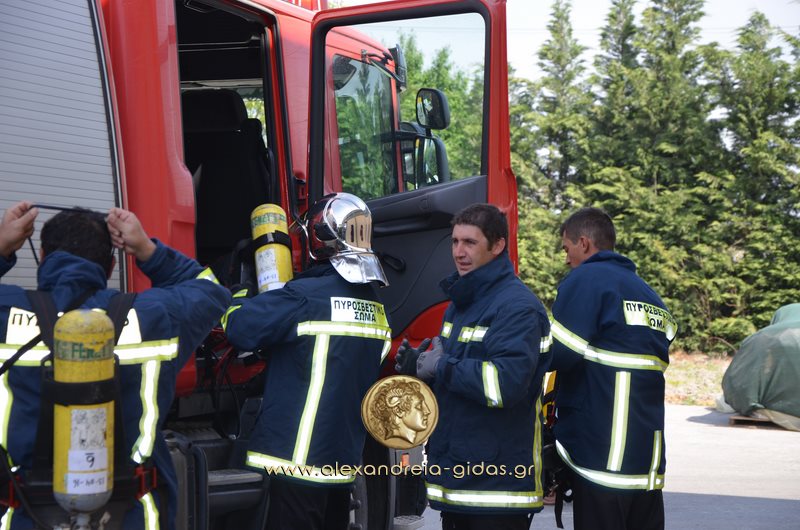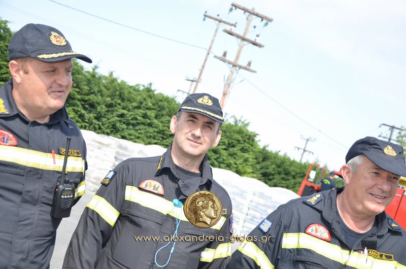 Στο εργοστάσιο των Βιολιπασμάτων πραγματοποιήθηκε το σενάριο κατάσβεσης φωτιάς εντός του εργοστασίου και χρονομετρήθηκε η ταχύτητα των αντρών της Π.Υ. Αλεξάνδρειας από την υπηρεσία μέχρι το εργοστάσιο και η κατάσβεση της φωτιάς.