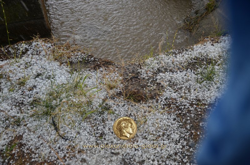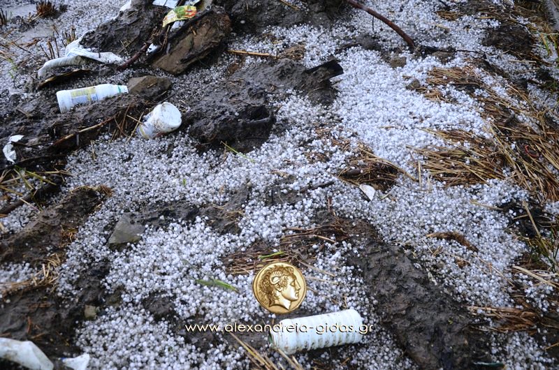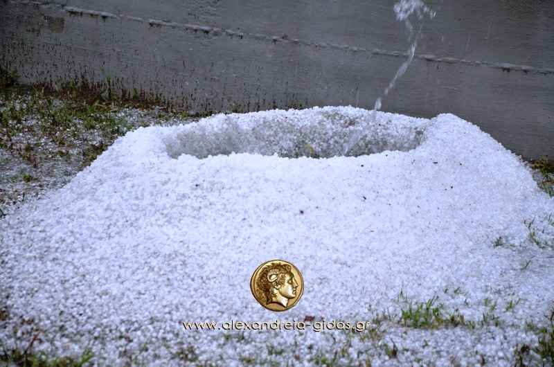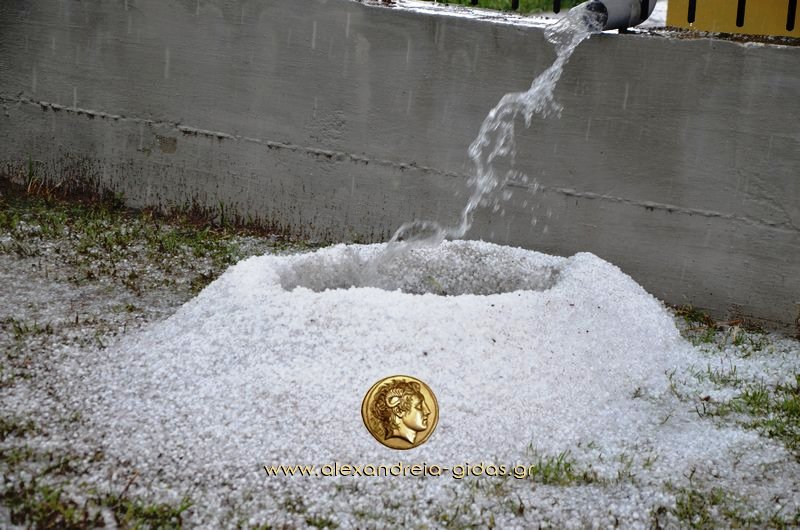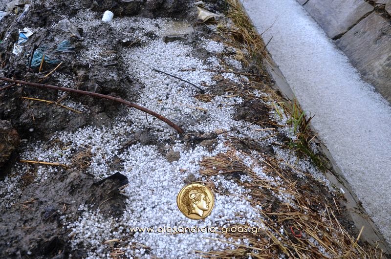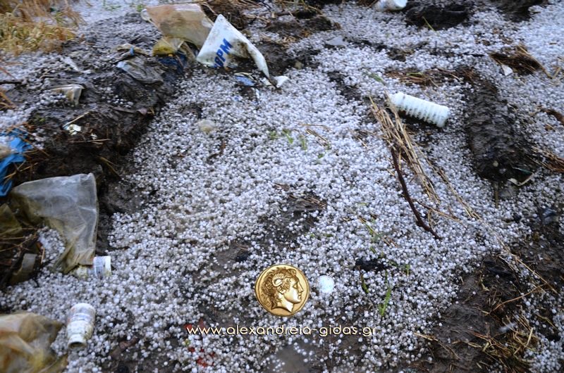 xalaaaaΌπως είχαν σωστά προειδοποιήσει οι μετεωρολόγοι με έκτακτα δελτία καιρού, πράγματι, πρωτοφανής ήταν η χαλαζόπτωση και στον δήμο Αλεξάνδρειας.