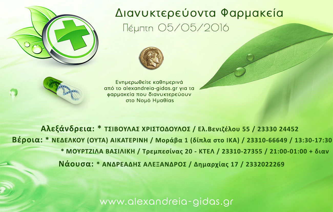 ΤΟΠΙΚΑ 5 Μαΐου, 2016 posted by admin Share Εφημερεύοντα – διανυκτερεύοντα φαρμακεία Ημαθίας Πέμπτη 5 Μαΐου Αλεξάνδρεια: Αφήστε μια απάντηση Ακύρωση απάντησηςΗ ηλ. διεύθυνση σας δεν δημοσιεύεται. Τα υποχρεωτικά πεδία σημειώνονται με *Σχόλιο * Όνομα Email Ιστότοπος Αποθήκευσε το όνομά μου, email, και τον ιστότοπο μου σε αυτόν τον πλοηγό για την επόμενη φορά που θα σχολιάσω.