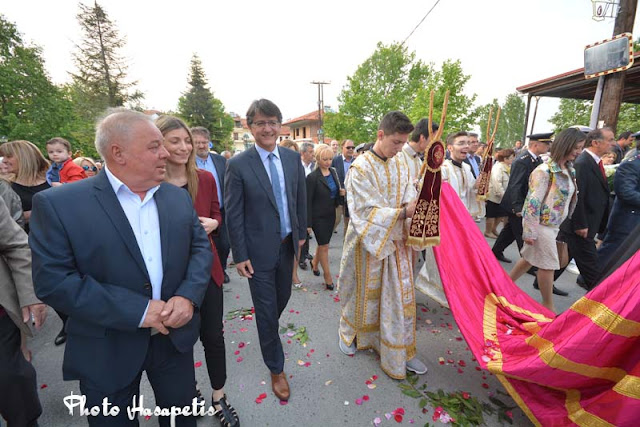Τον Τίμιο Σταυρό υποδέχθηκαν επίσης με θερμούς λόγους η Αντιπεριφερειάρχης Πιερίας Σοφία Μαυρίδου και ο Δήμαρχος Πύδνας-Κολινδρού Ευάγγελος Λαγδάρης.