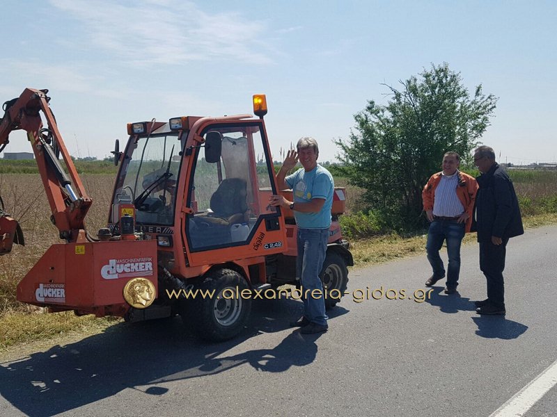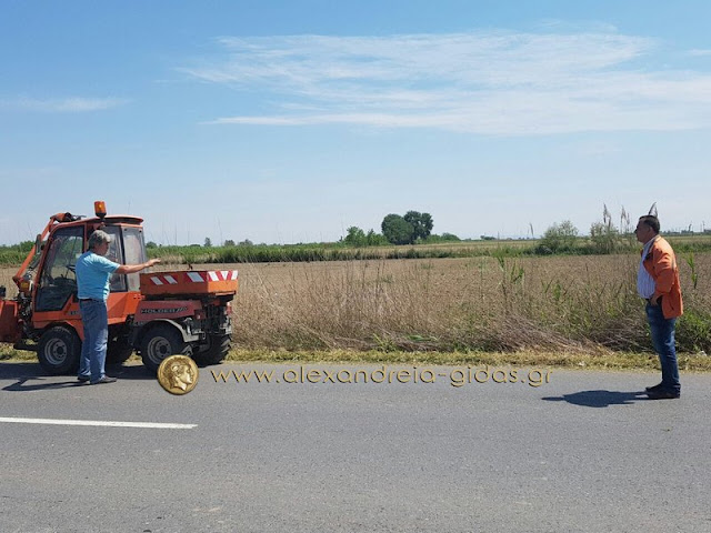 Στον δρόμο Αλεξάνδρειας – Γιαννιτσών με κατεύθυνση προς τον Σχοινά, συναντήσαμε το πρωί της Τρίτης 10 Μαΐου τον αντιδήμαρχο καθαριότητας Σωτήρη Τόκα με συνεργείο του δήμου Αλεξάνδρειας.