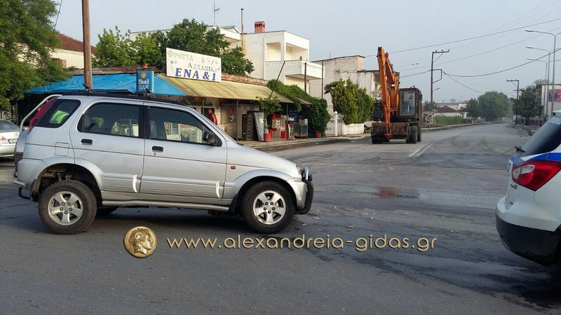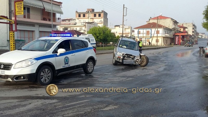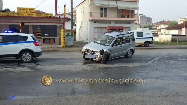 Τροχαίο ατύχημα σημειώθηκε το πρωί της Παρασκευής 13 Μαΐου στην Ελ. Βενιζέλου στην Αλεξάνδρεια στην στροφή του Σχοινά.
