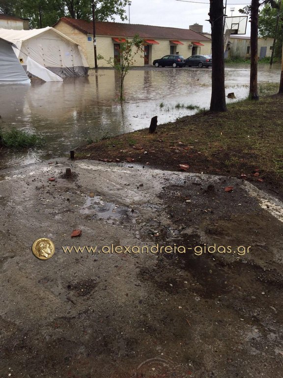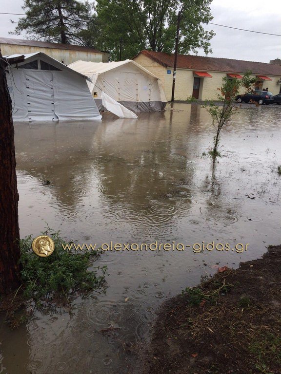 Η κατάσταση στο στρατόπεδο είναι τραγική με τα νερά της βροχής να έχουν μπει στις περισσότερες από τις σκηνές.