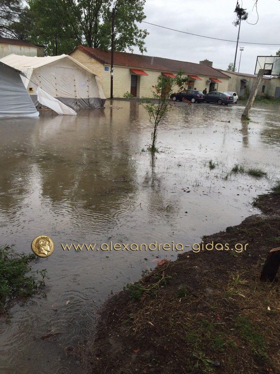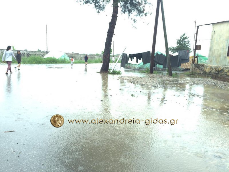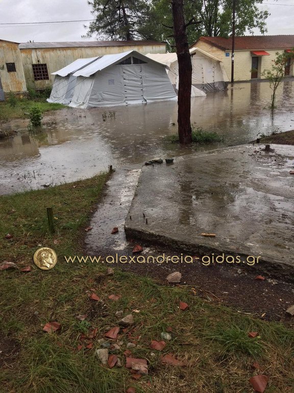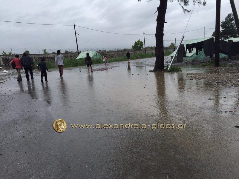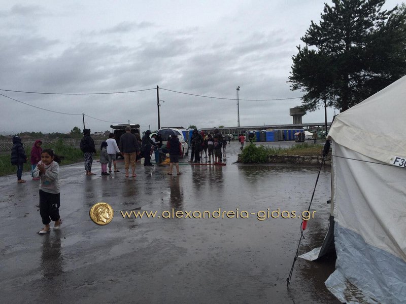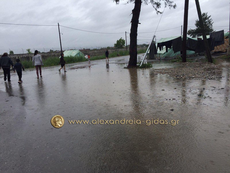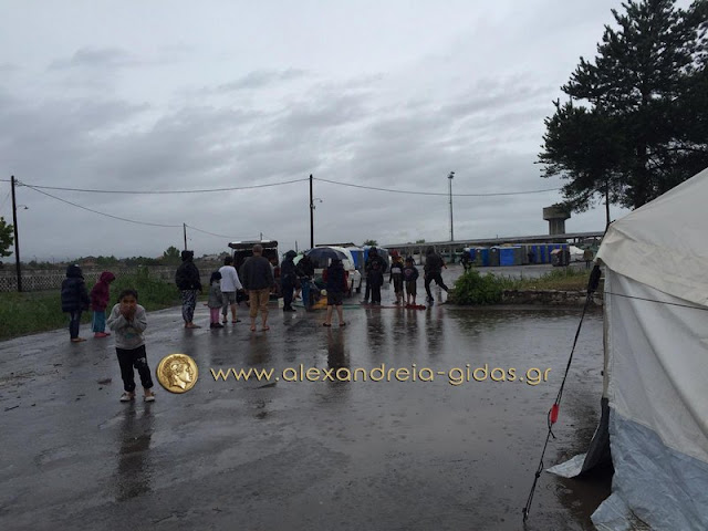 Η κατάσταση στο στρατόπεδο είναι τραγική με τα νερά της βροχής να έχουν μπει στις περισσότερες από τις σκηνές.