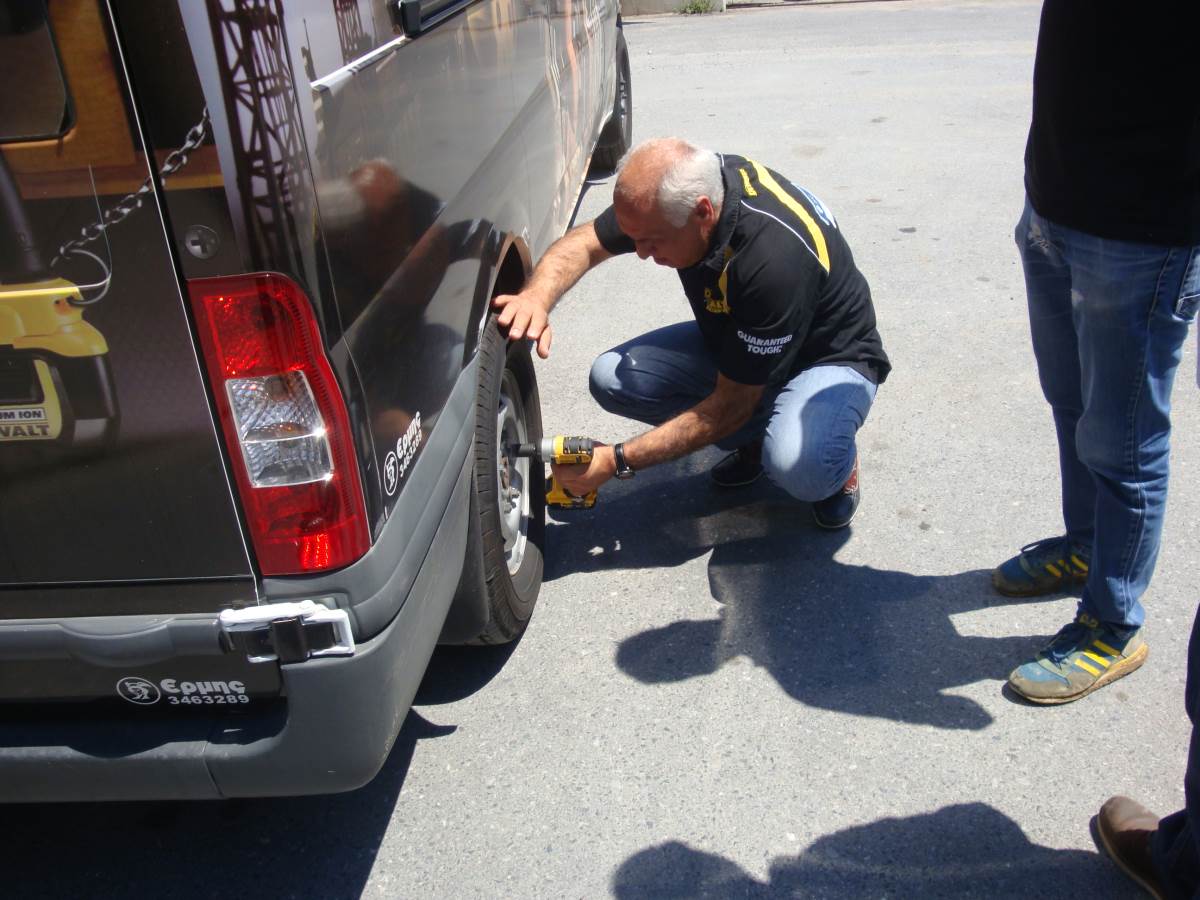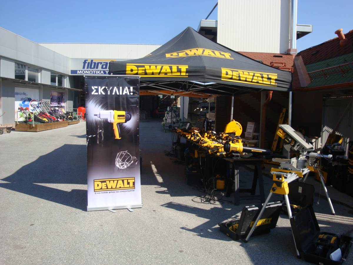 Το μαύρο φορτηγάκι της DEWALT βρέθηκε από νωρίς το πρωί στους χώρους του καταστήματος της «ΒΑΪΝΑΣ ΑΕ» για να παρουσιάσει την κινούμενη έκθεση εργαλείων της.