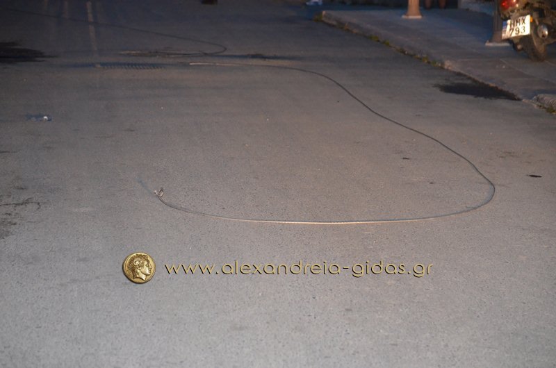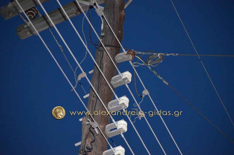 Ο λόγος της διακοπής είναι ένα κομμένο καλώδιο της ΔΕΗ στην οδό Θεοχάρη Κούγκα της Αλεξάνδρειας (εικόνες παρακάτω).
