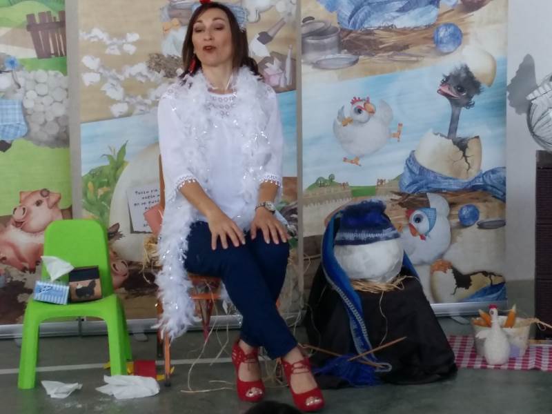 Αυτή τη φορά, παρουσίασε το παιδικό της βιβλίο «Ποιος θα πάρει το αυγό;» με τη συνοδεία μουσικού, του κυρίου Στάθη Γκατζούρα.