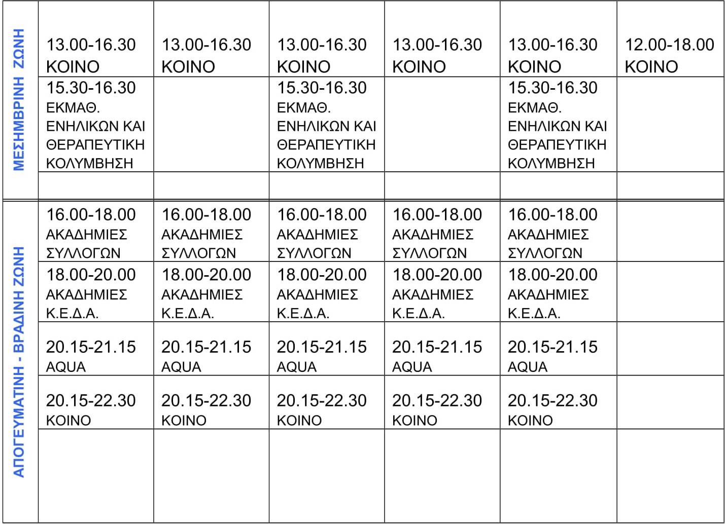Για τους μαθητές της Γ’ Λυκείου που για την εισαγωγή τους στα Ανώτατα Εκπαιδευτικά Ιδρύματα θα δώσουν το μάθημα της κολύμβησης, η κολυμβητική δεξαμενή θα παρέχεται δωρεάν στις ώρες του κοινού μετά την επίδειξη των απαραίτητων δικαιολογητικών.