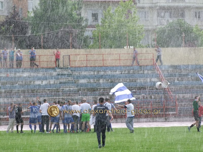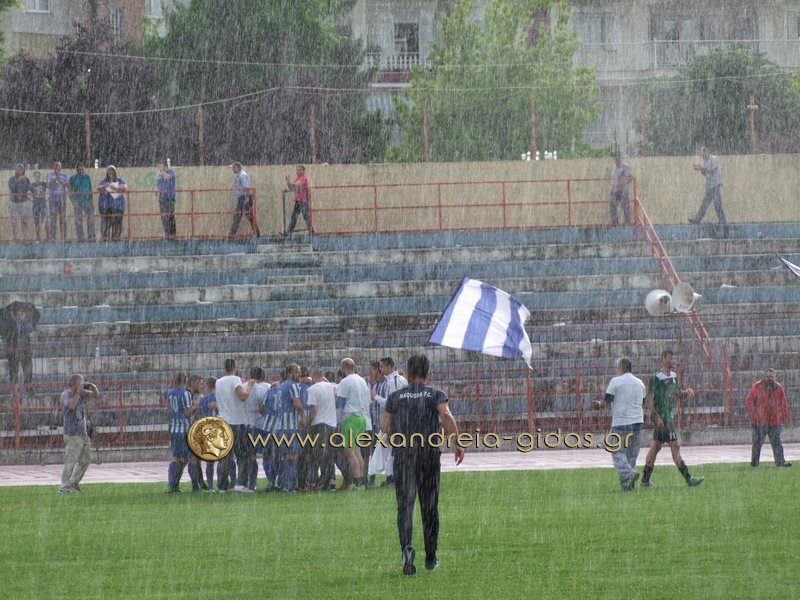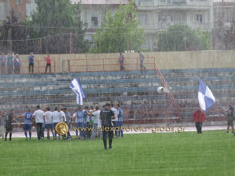 Με το σφύριγμα της λήξης του διαιτητή Γκορτσίλα (ΣΔ Μακεδονίας) οι γηπεδούχοι έγιναν ένα κουβάρι πανηγυρίζοντας δικαιολογημένα, παρά την δυνατή βροχόπτωση, την επάνοδο της ομάδας τους στην Γ’ Εθνική κατηγορία!