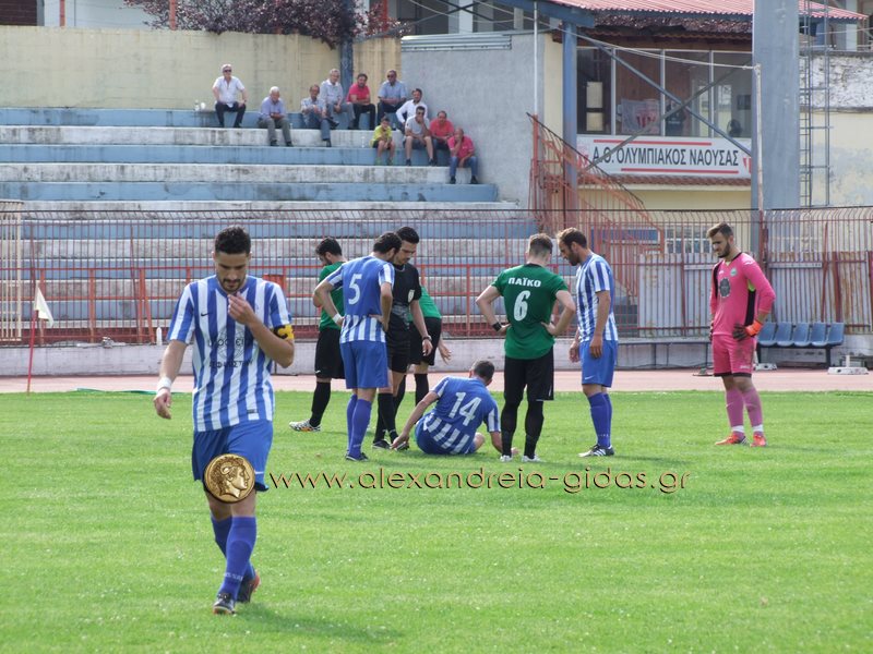 Τρία γκολ για τους Ναουσαίους πέτυχε ο Δημήτρης Καφές, δύο ο Λαμπριανίδης και από ένα οι Μουρίκι, Παντζαρτζίδης, σε ένα ματς που ήταν επιθετικός μονόλογος των γηπεδούχων από το πρώτο έως το τελευταίο λεπτό.