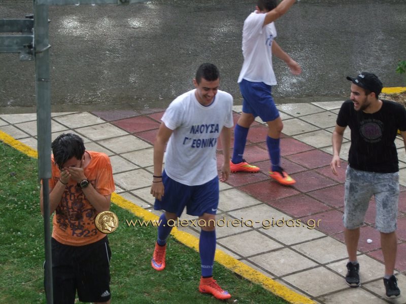 ΝΑΟΥΣΑ: Ιωακειμίδης, Παπατάνος, Περηφανόπουλος, Ζούρκος, Μουσικάκης, Σαρηγιαννίδης, Αβραμόπουλος (55’ Παντζαρτζίδης), Λαμπριανίδης, Πατατούκας (17′ λ.τ. Τασιώνας), Καφές (58′ Αδ. Βλαχοδήμος), Μουρίκι.