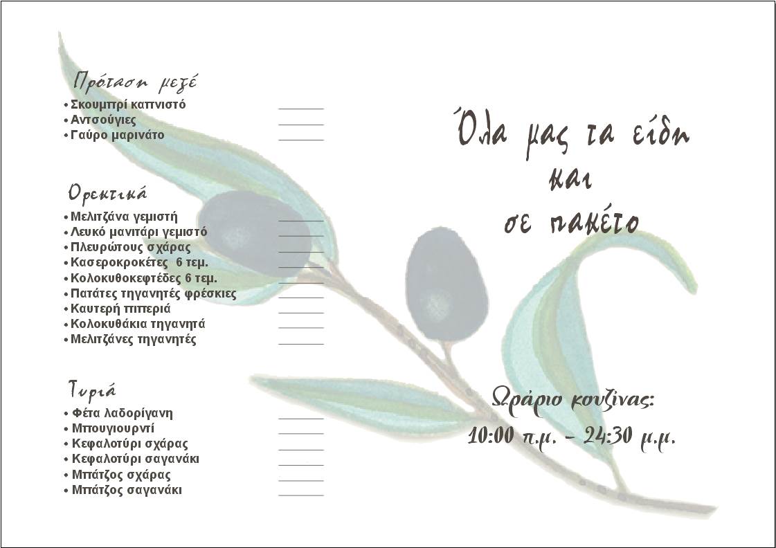 Όλα τα είδη που ετοιμάζει ο σεφ στα ΜΕΖΕΚΛΙΚΙΑ μπορείτε να τα παραγγείλετε και σε πακέτο στα τηλέφωνα 6983866239 και 2333400093!