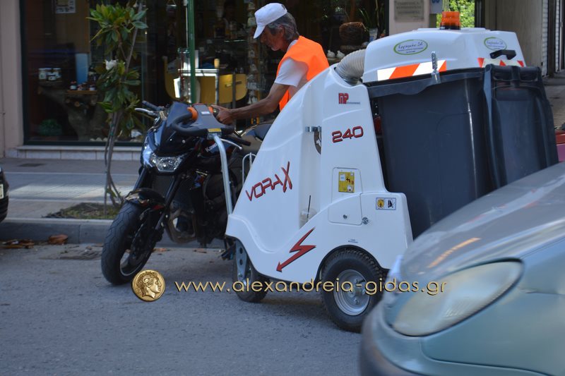 Τον Μάρτιο προμηθεύτηκε ο δήμος Αλεξάνδρειας την ηλεκτρική χειροκίνητη σκούπα η οποία πλέον χρησιμοποιείται για καθαρισμό εξωτερικών χώρων (δρόμοι, πάρκα, γήπεδα) μαζεύοντας φύλλα, χόρτα, σκουπίδια, τενεκεδάκια κλπ.
