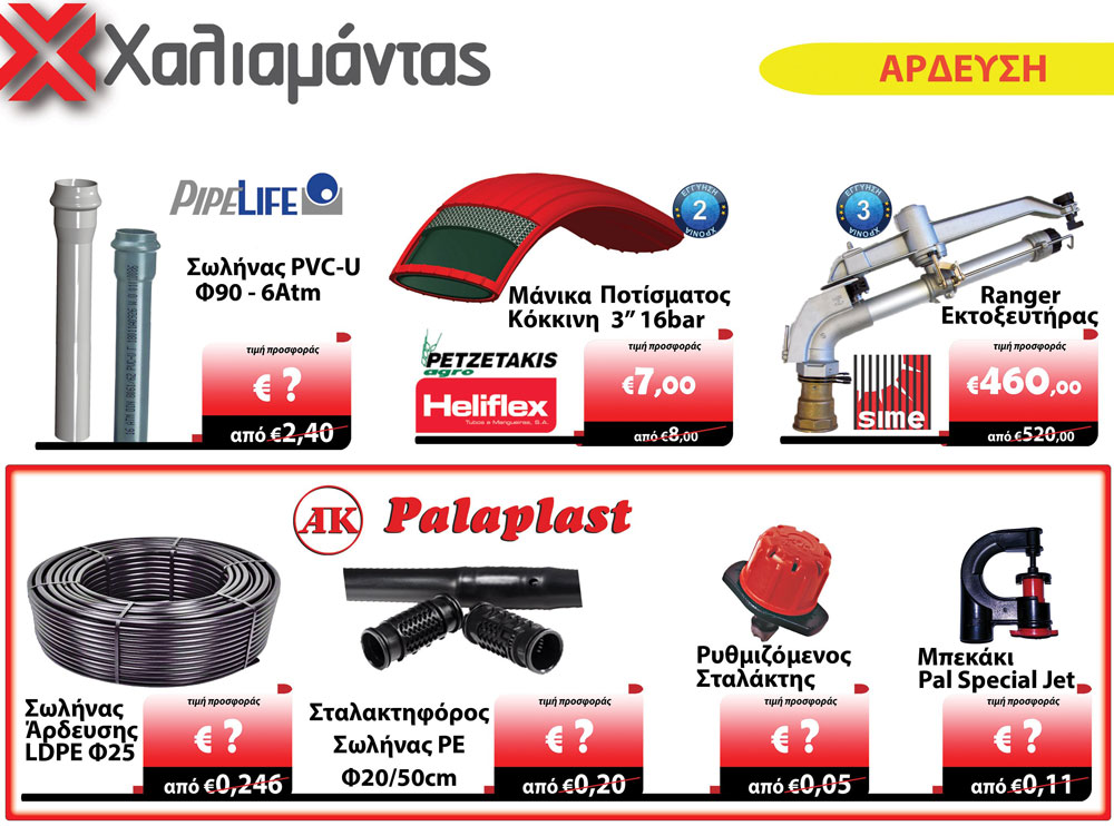 Οι καλύτερες μάρκες σε προϊόντα άρδευσης όπως PipeLife, Petzetakis, Sime και Palaplast βρίσκονται στο κατάστημα ΧΑΛΙΑΜΑΝΤΑΣ στην 28η Οκτωβρίου 25 στην Αλεξάνδρεια (πρώην DIA).