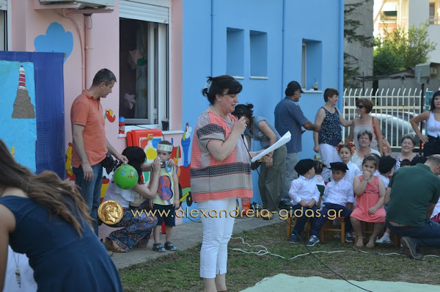 Οι μαθητές και οι νηπιαγωγοί του Α΄ Παιδικού Σταθμού της Αλεξάνδρειας πραγματοποίησαν την καλοκαιρινή τους γιορτή στον αύλειο χώρο του σταθμού το απόγευμα της Τετάρτης 22 Ιουνίου.