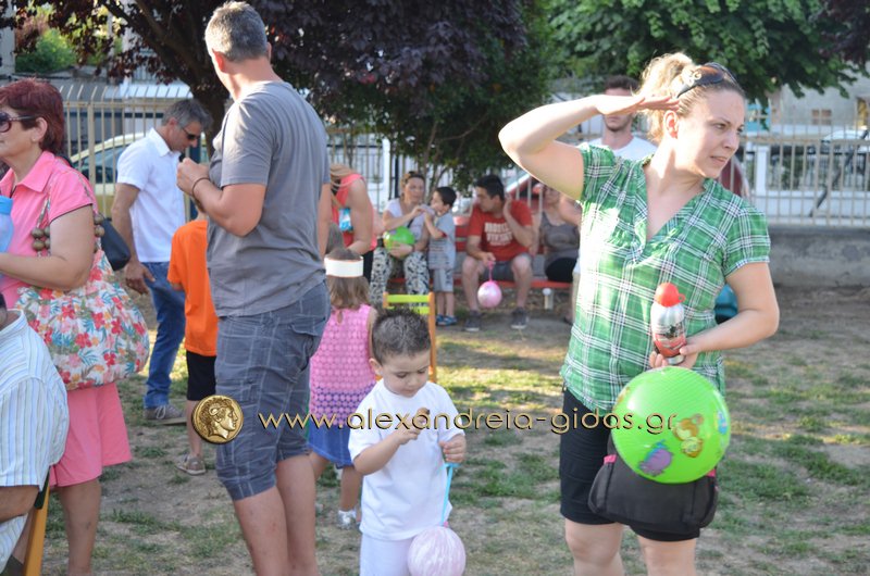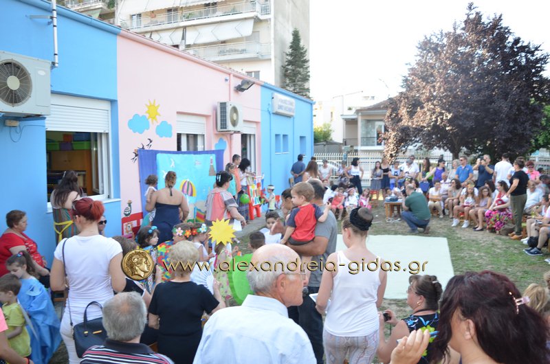 Οι μαθητές και οι νηπιαγωγοί του Α΄ Παιδικού Σταθμού της Αλεξάνδρειας πραγματοποίησαν την καλοκαιρινή τους γιορτή στον αύλειο χώρο του σταθμού το απόγευμα της Τετάρτης 22 Ιουνίου.