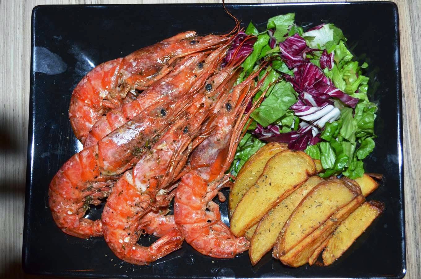 Γαρίδες σχάρας (πατάτες country, σαλάτα, λαδολέμονο) με 1 ποτήρι κρασί δώρο