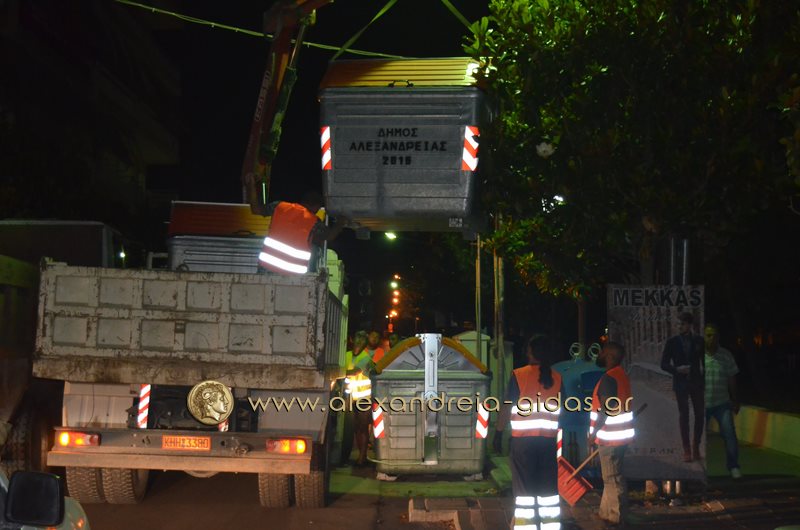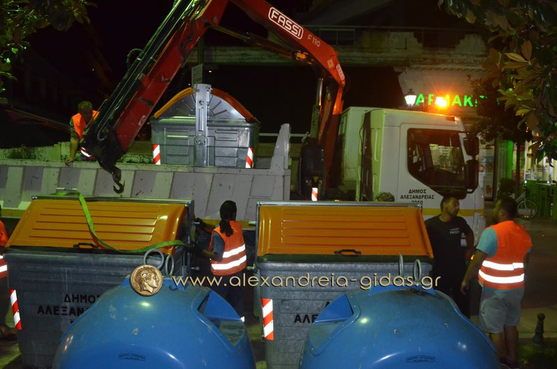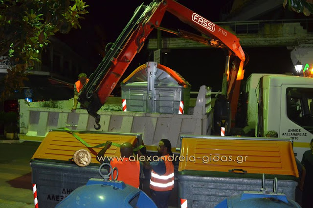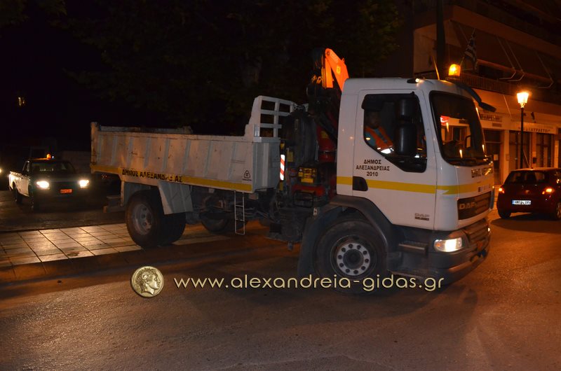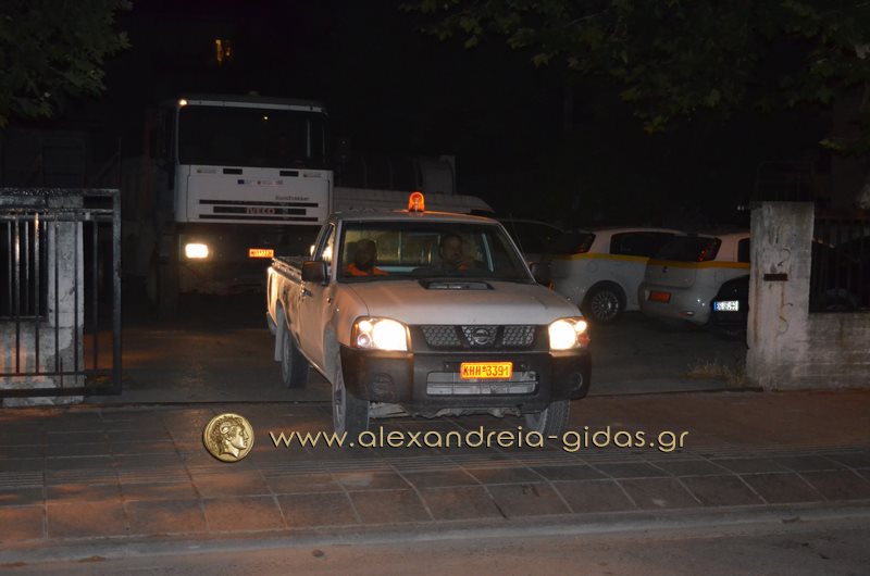 Μετά τα μεσάνυχτα συναντήσαμε τον αντιδήμαρχο καθαριότητας του δήμου Αλεξάνδρειας κ. Σωτήρη Τόκα με υπαλλήλους του δήμου στην πόλη μας.