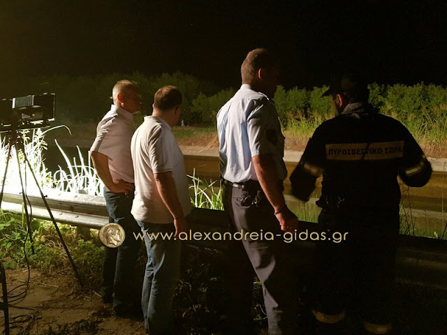Το αυτοκίνητο εντοπίστηκε από περαστικούς και ειδοποιήθηκε ο δήμος Αλεξάνδρειας και ο αντιδήμαρχος Σωτήρης Τόκας, που σταμάτησε τη ροή των υδάτων ενώ στο σημείο έφτασε η πυροσβεστική και η αστυνομία.