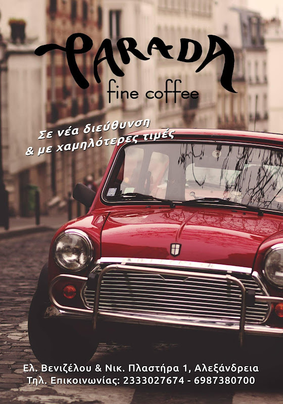 Το καφέ – μπουγάτσα «PARADA» βρίσκεται στη γωνία της Ελ. Βενιζέλου με τη Ν. Πλαστήρα (στροφή για το ΚΤΕΛ Αλεξάνδρειας) και σας υποδέχεται καθημερινά από νωρίς το πρωί μέχρι αργά το βράδυ.
