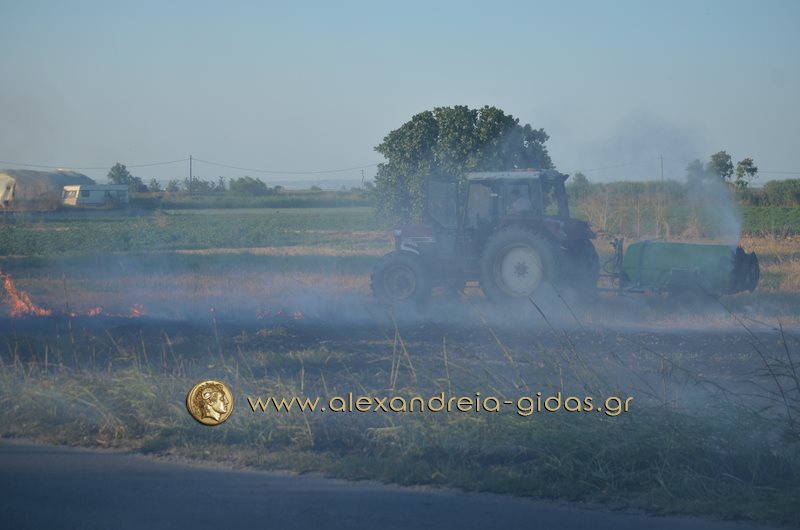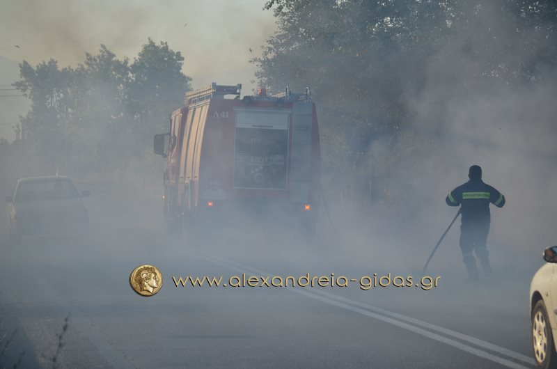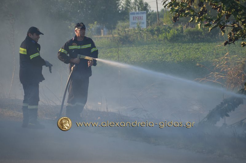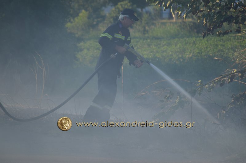 Φωτιά σε ξερά χόρτα ξέσπασε το απόγευμα της Τρίτης 12 Ιουλίου απέναντι από τα κοιμητήρια Αλεξάνδρειας στον δρόμο προς τον Σχοινά.