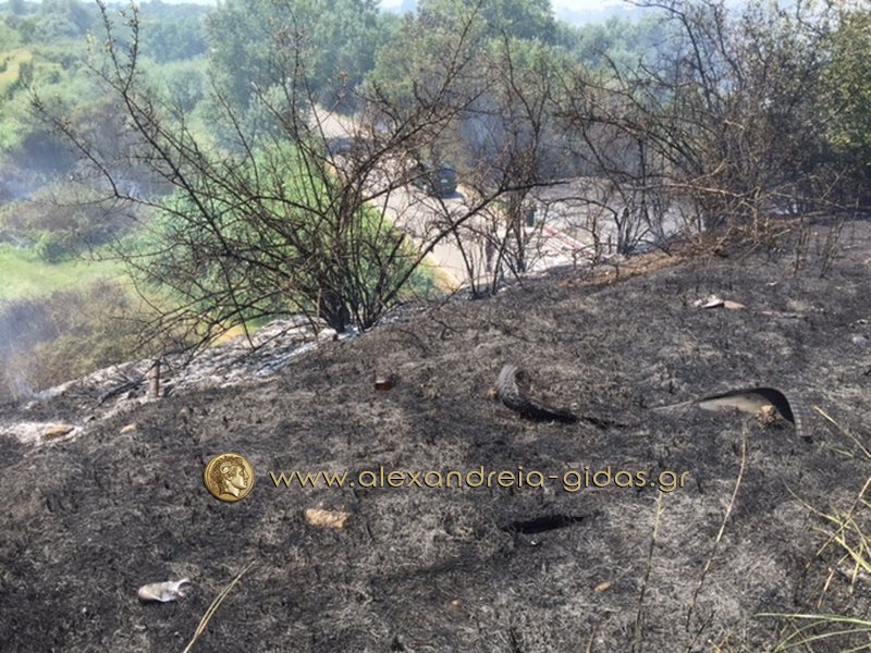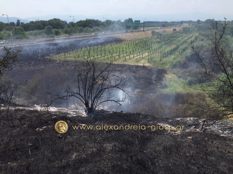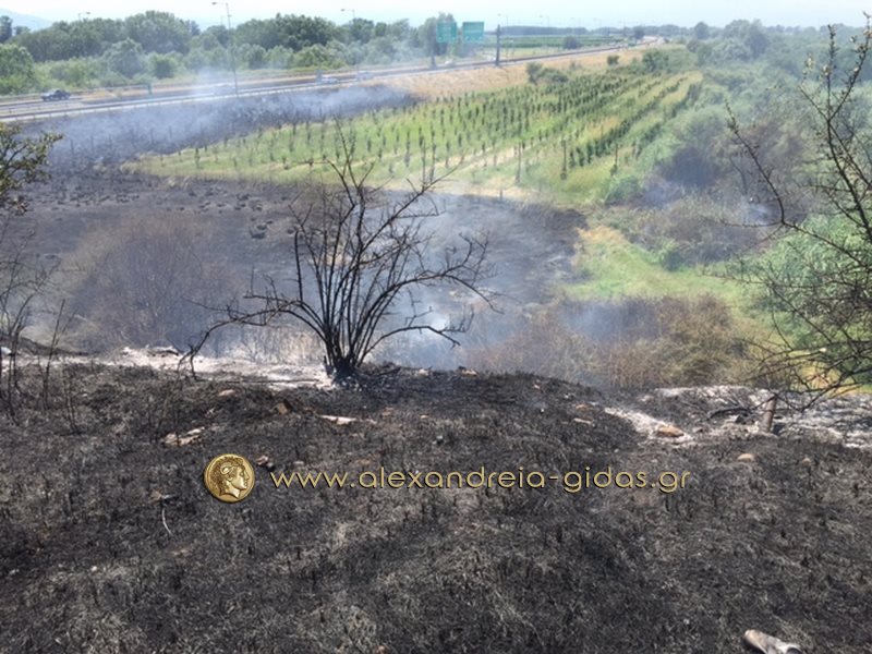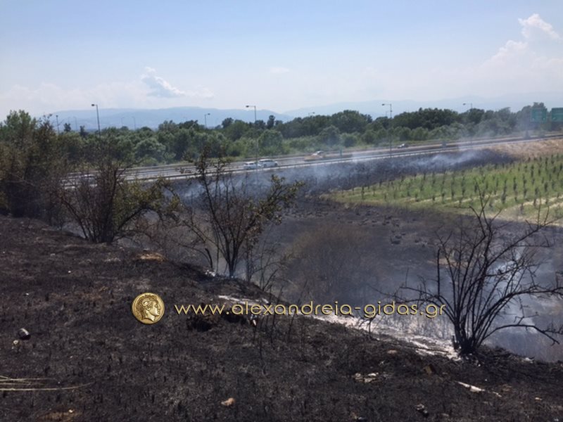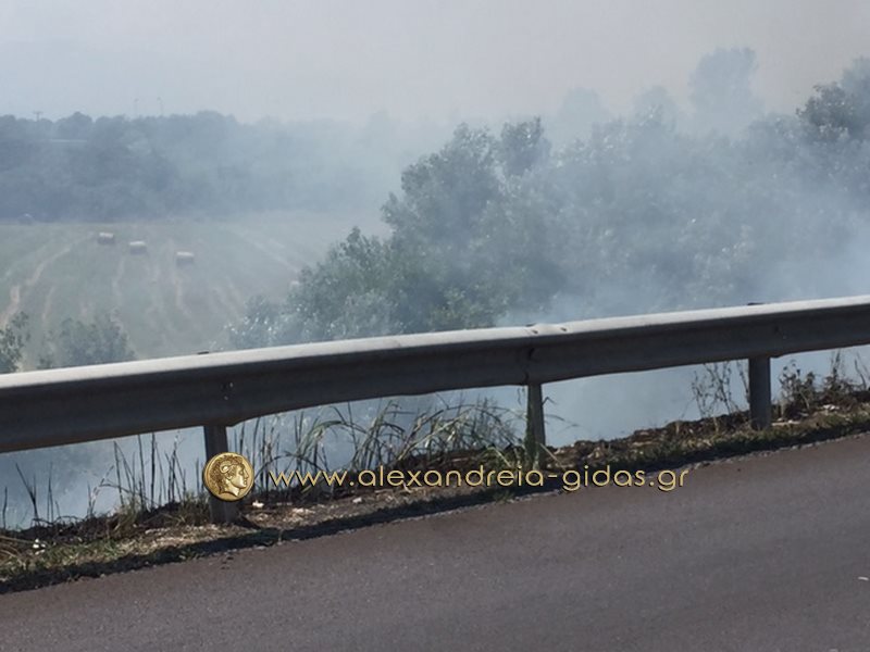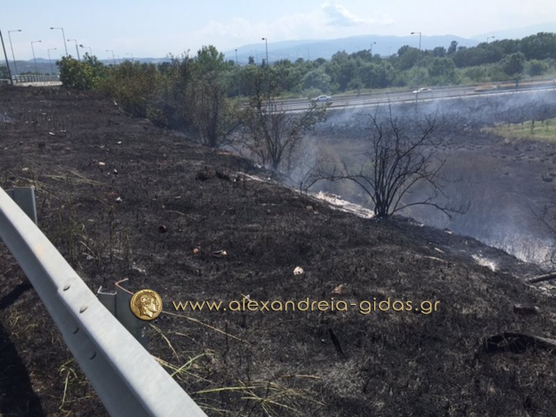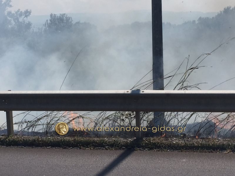 Η φωτιά ξέσπασε στα χόρτα παραπλεύρως του δρόμου και αμέσως επεκτάθηκε σε πολλά σημεία.