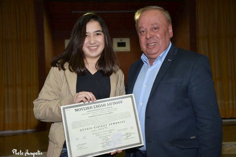 Επίσης, τιμητική πλακέτα δόθηκε και στον Μαέστρο της χορωδίας του «CantoOlympus»,κ. Μιχάλη Καρυοφυλλίδη, για το Χρυσό βραβείο που έλαβε η Παιδική χορωδία Αιγινίου CantoOlympus στον 4ο Διεθνή Διαγωνισμό- Φεστιβάλ της ARTIVAστο Ναύπλιο.
