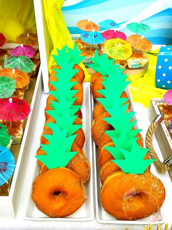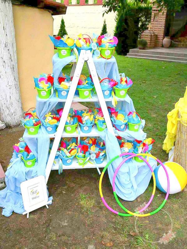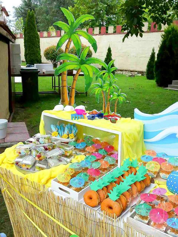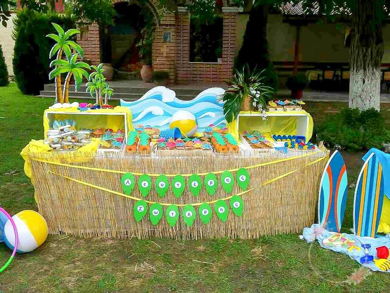 Φοίνικες, σανίδες του surf, κουβαδάκια, μπάλες και άλλα διακοσμητικά ολοκλήρωναν ένα καλοκαιρινό σκηνικό.