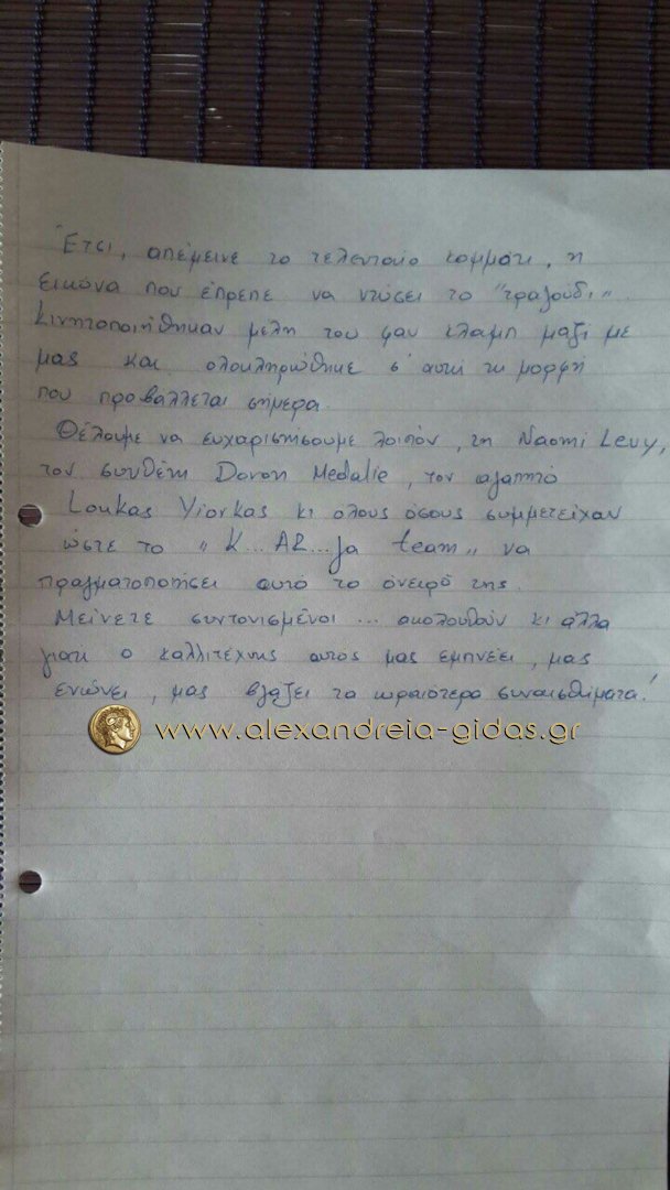 Στο φαν κλαμπ μέλος είναι και η Έφη Παπαδοπούλου από την πόλη μας την Αλεξάνδρεια.