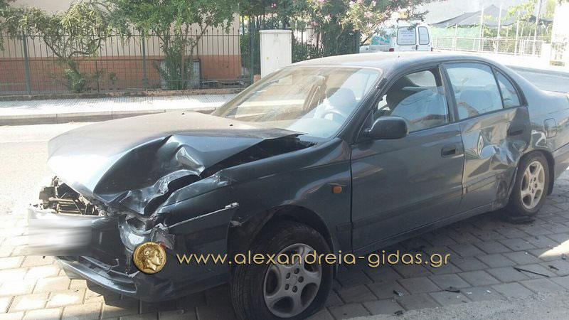 Τροχαίο ατύχημα σημειώθηκε το πρωί της Δευτέρας 25 Ιουλίου στην Αλεξάνδρεια και συγκεκριμένα στη διασταύρωση των οδών Κολινδρού και Κατρανίτσα.