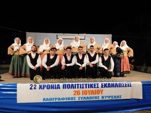 Το βράδυ της Τρίτη 26 Ιουλίου με αφορμή τον εορτασμό της Αγίας Παρασκευής, πραγματοποιήθηκαν εκδηλώσεις στην Κυψέλη του δήμου Αλεξάνδρειας που διοργάνωσε ο Λαογραφικός Σύλλογος Κυψέλης για 22η χρονιά.
