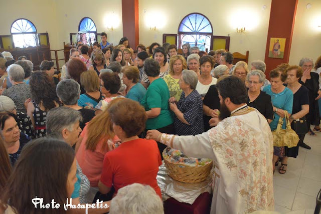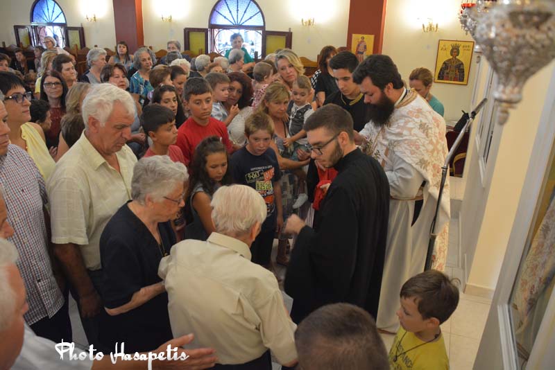 Στο τέλος της Θείας Λειτουργίας ο εφημέριος π. Παναγιώτης Τιμαμόπουλος αφού ευχαρίστησε όλους όσους συνέβαλαν στην διργάνωση των καλοκαιρινών θρησκευτικών πανηγύρεων πρόσφερε και τα καθιερωμένα σταφύλια στους πιστούς.