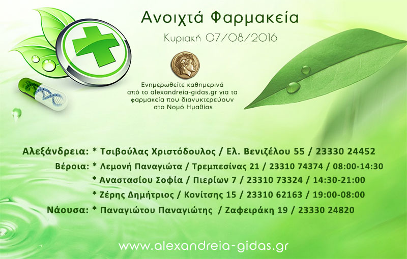 ΤΟΠΙΚΑ 7 Αυγούστου, 2016 posted by admin Share Ανοιχτά φαρμακεία Ημαθίας Κυριακή 7 Αυγούστου Αλεξάνδρεια: Αφήστε μια απάντηση Ακύρωση απάντησηςΗ ηλ. διεύθυνση σας δεν δημοσιεύεται. Τα υποχρεωτικά πεδία σημειώνονται με *Σχόλιο * Όνομα Email Ιστότοπος Αποθήκευσε το όνομά μου, email, και τον ιστότοπο μου σε αυτόν τον πλοηγό για την επόμενη φορά που θα σχολιάσω.
