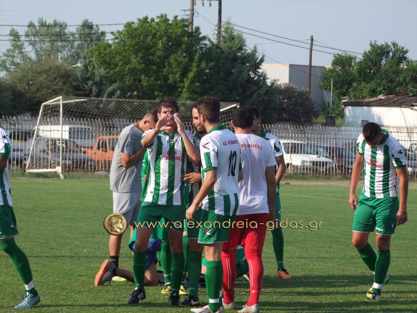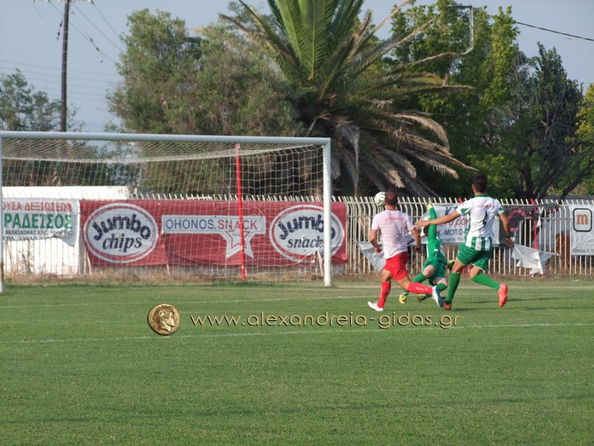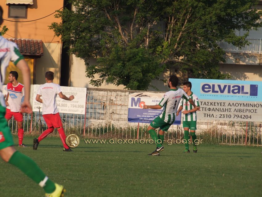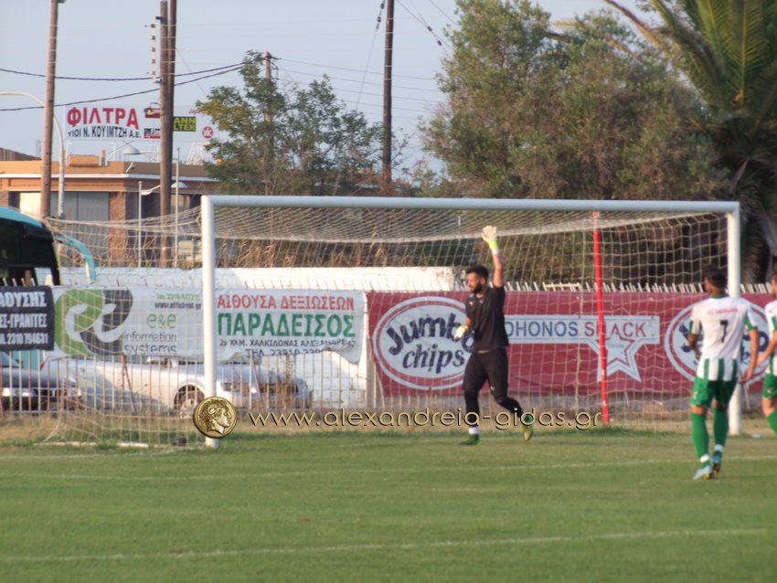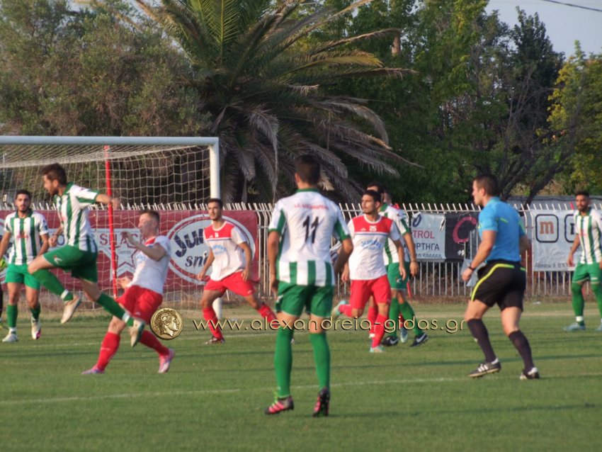 Οι γηπεδούχοι μέσα σε 20 λεπτά (στο 21΄ και στο 40΄) πέτυχαν δύο τέρματα με τους Προβατίδη και Μπάλιο. Η Αλεξάνδρεια κέρδισε πέναλτι στο 85΄ με τον Λέκκα. Την εκτέλεση ανέλαβε ο Σαρηγιαννίδης ο οποίος ωστόσο έστειλε την μπάλα έξω.