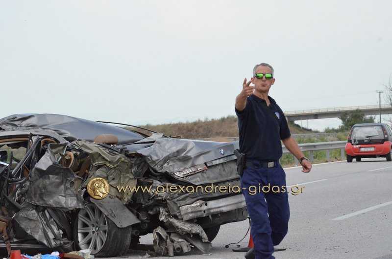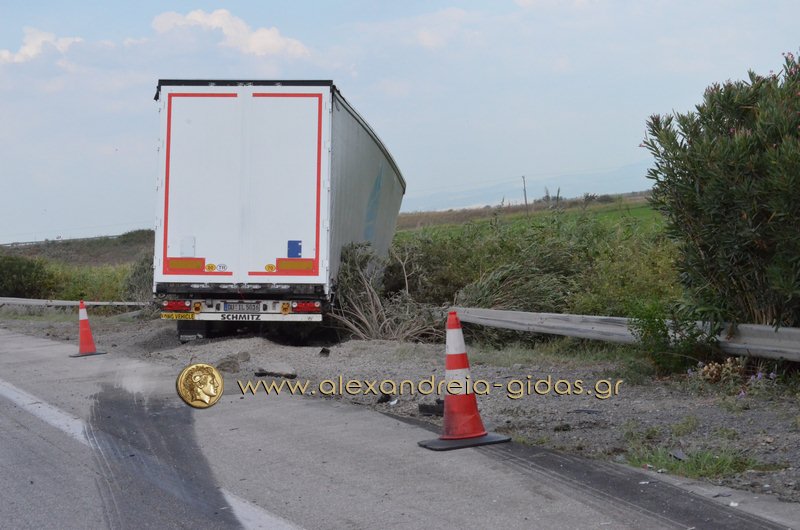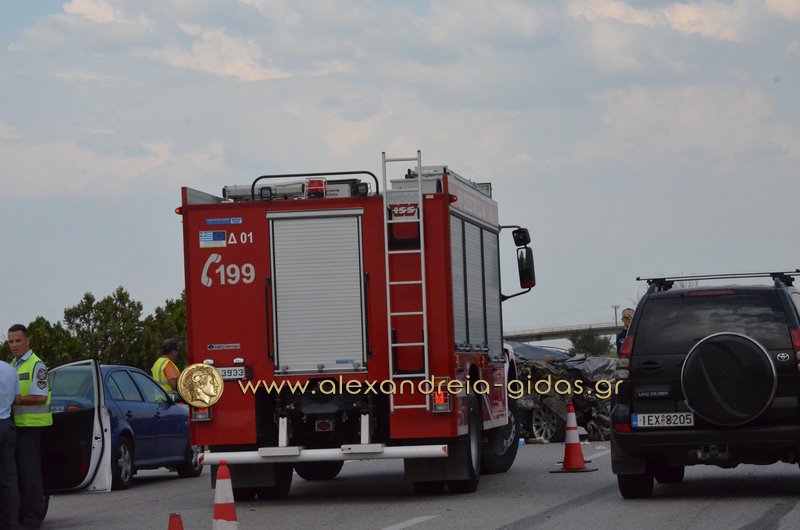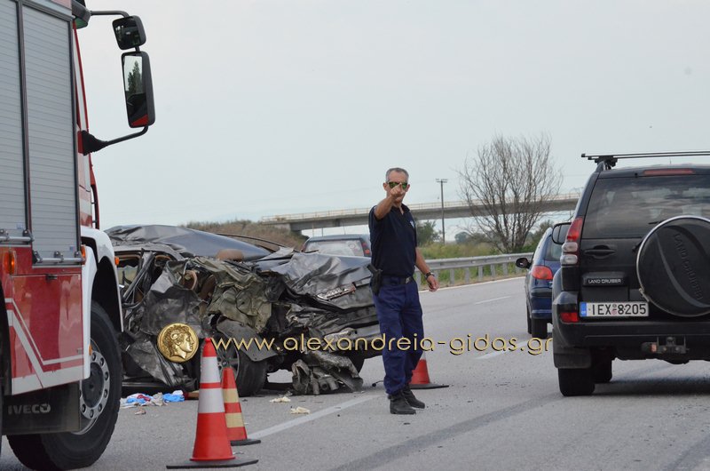 Ο οδηγός του Ι.Χ. εγκλωβίστηκε στο όχημά του και χρειάστηκε η παρέμβαση της πυροσβεστικής υπηρεσίας Αλεξάνδρειας για να τον απεγκλωβίσουν.