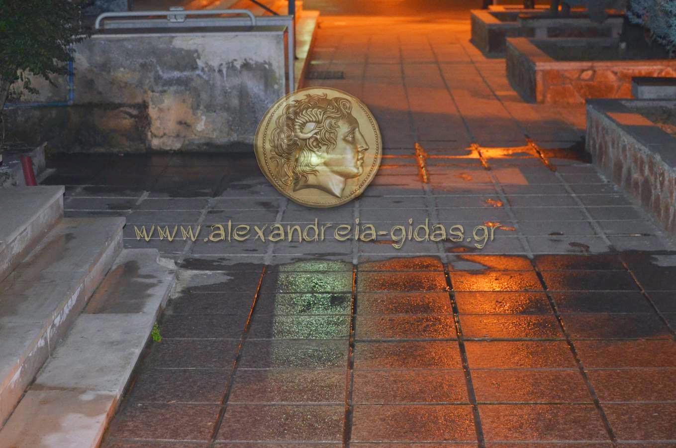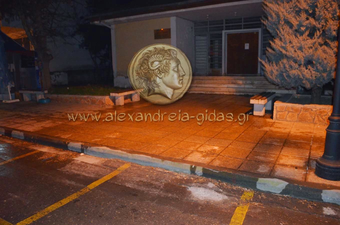 Μετά από τηλεφώνημα αναγνώστη μας, βρεθήκαμε το βράδυ του Σαββάτου μπροστά στο δημαρχείο Αλεξάνδρειας όπου διαπιστώσαμε την κατάσταση που θα δείτε στις εικόνες παρακάτω.