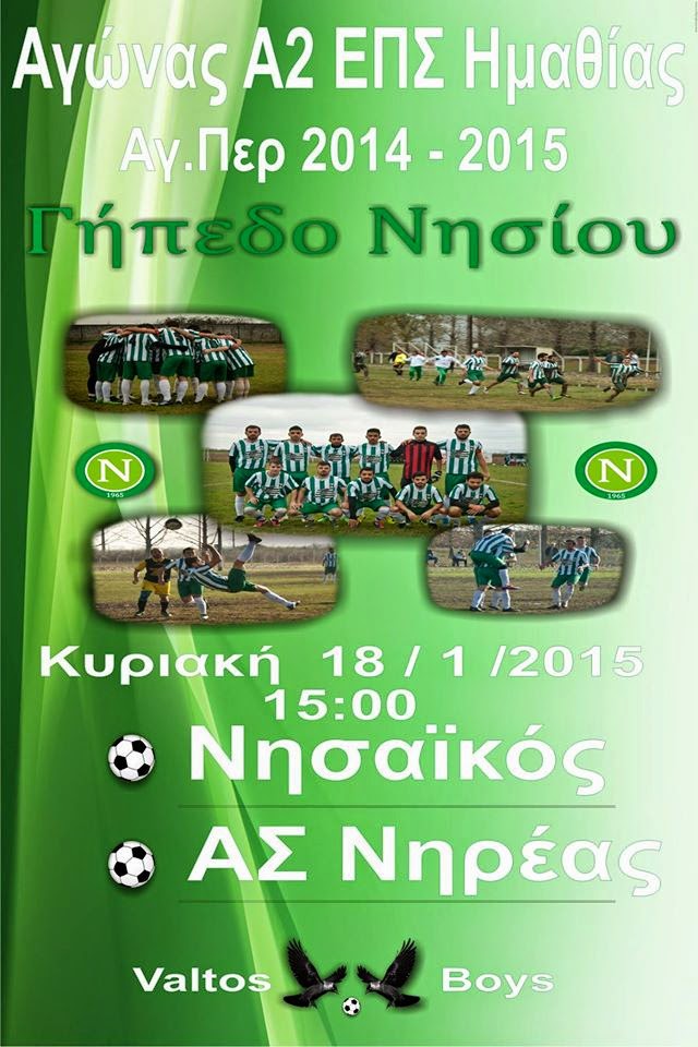 Η ομάδα μας ο “ΝΗΣΑΪΚΟΣ” αντιμετωπίζει τον “Α.Σ. ΝΗΡΕΑΣ ΒΕΡΟΙΑΣ” 18/01/2015 στις 15:00 στο γήπεδο του Νησίου!