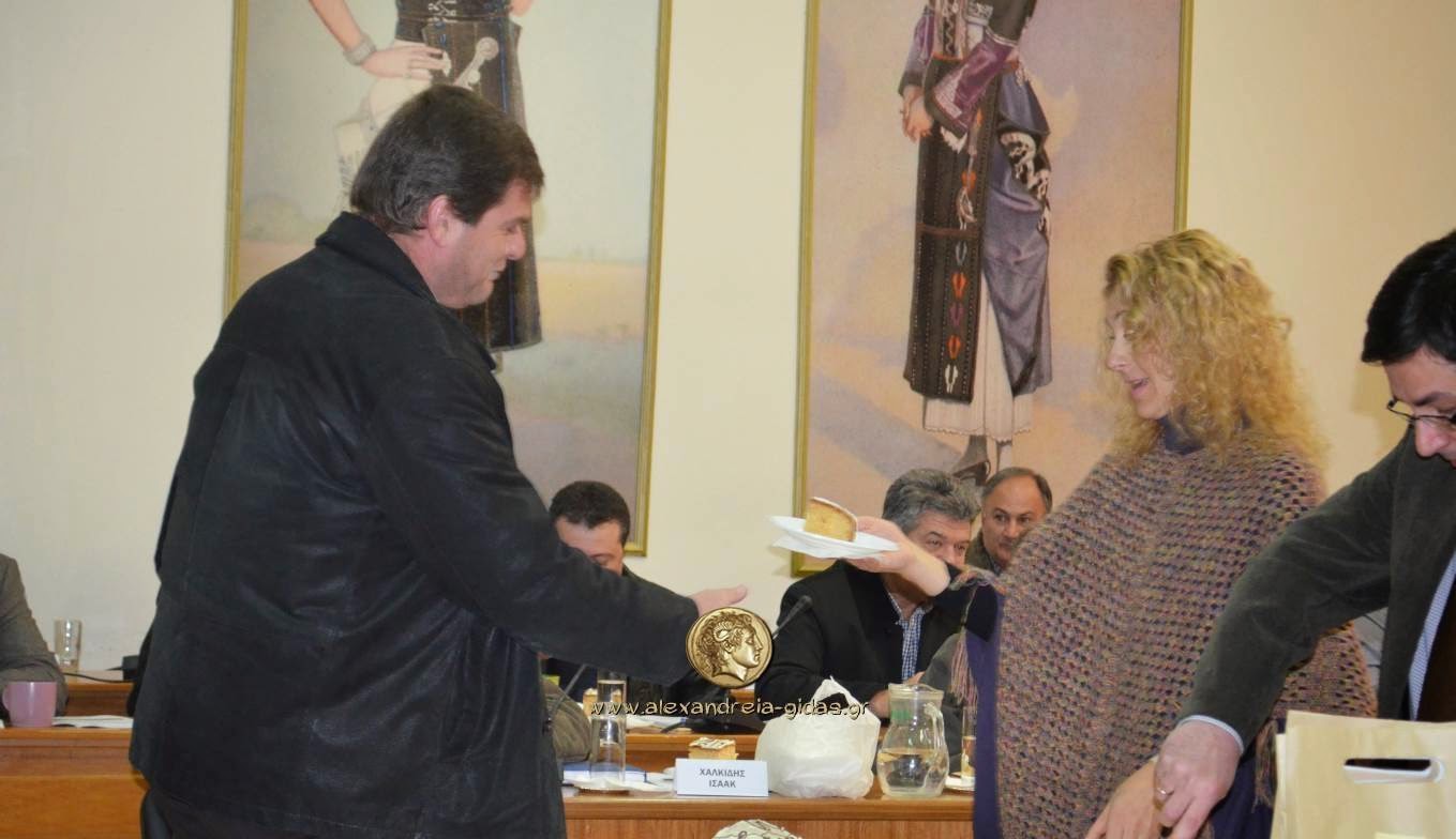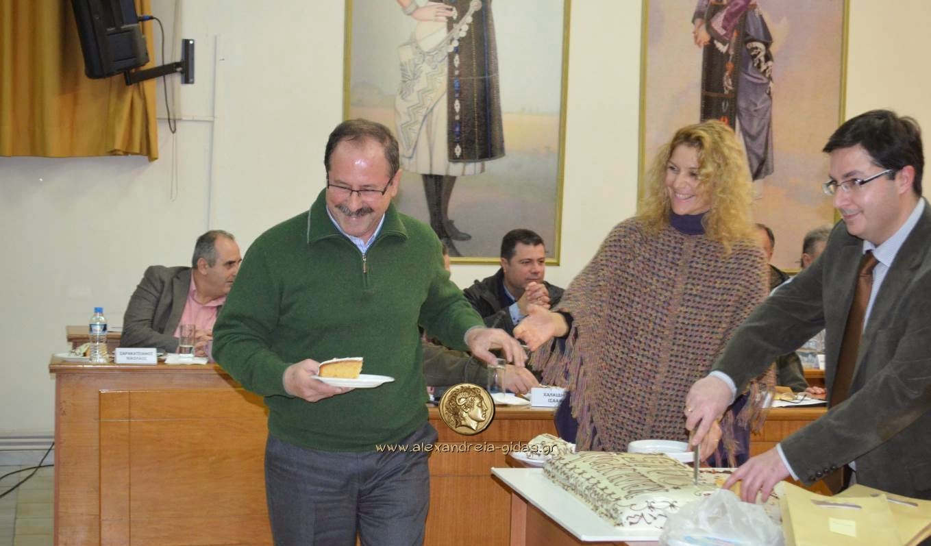 Στο πρώτο δημοτικό συμβούλιο Αλεξάνδρειας για το 2015 πραγματοποιήθηκε η κοπή της βασιλόπιτας από τον πρόεδρο του δημοτικού συμβουλίου Νίκου Μπρουσκέλη.