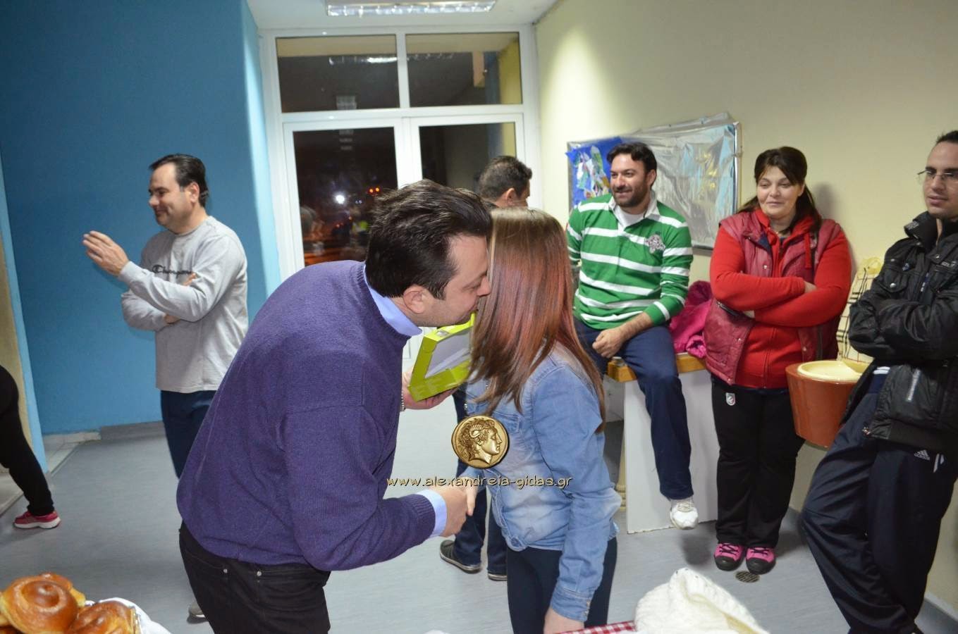 Από τους μικρούς χορευτές της ΕΣΤΙΑΣ το φλουρί κέρδισε η Μαρία Νικολοπούλου για την οποία το δώρο ήταν ένα τάμπλετ ενώ από τους μεγάλους χορευτές τυχερή η Βασιλική Κωστογλίδου που κέρδισε βιβλία τοπικής ιστορίας και δωρεάν τη συνδρομή της στον σύλλογο για το 2015.