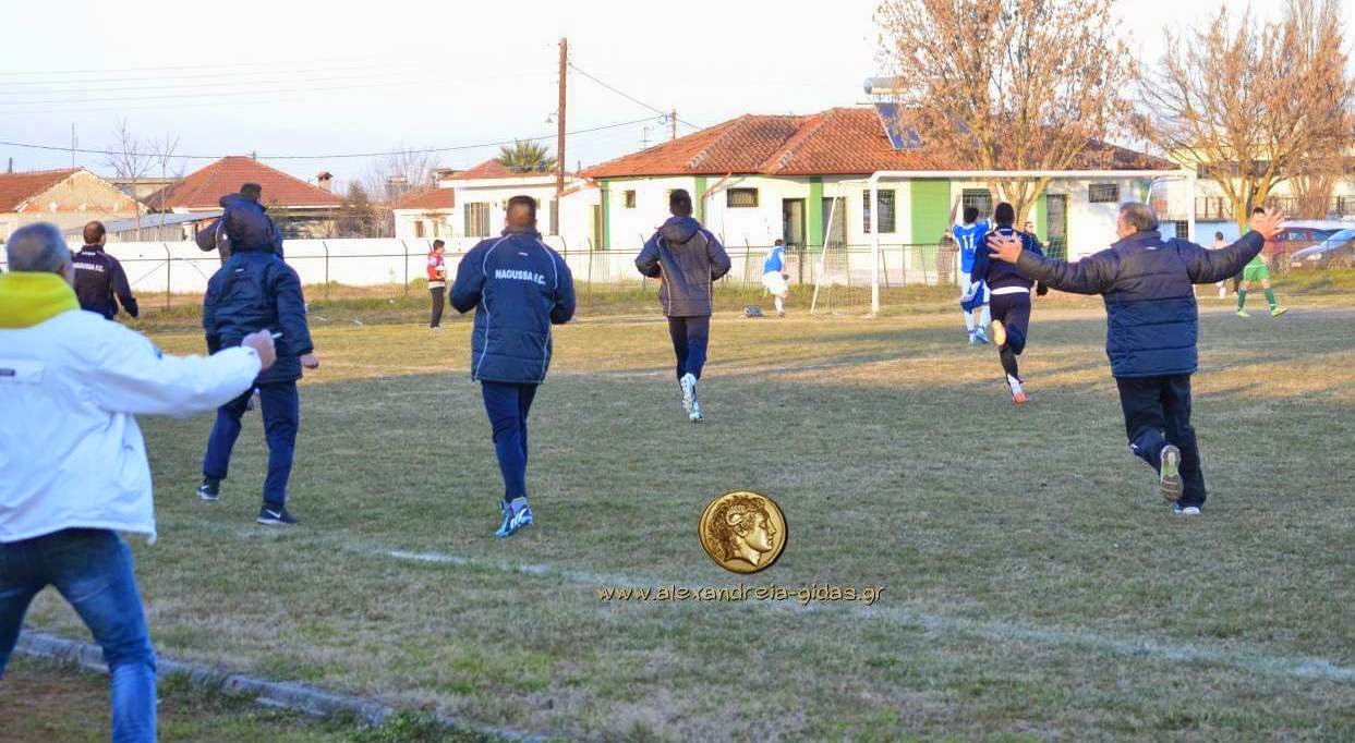 Στο δεύτερο ημίχρονο οι φιλοξενούμενοι μπήκαν στον αγωνιστικό χώρο με καθαρές διαθέσεις να γυρίσουν το παιχνίδι. Η ισοφάριση για τη Νάουσα ήρθε στο 61΄ όταν ο Σαρηγιαννίδης με απευθείας φάουλ νίκησε τον Μουσκευτάρα πετυχαίνοντας το 1-1. Η Νάουσα δεν επαναπαύτηκε στην ισοφάριση και κυνήγησε τη νίκη μέχρι το τελευταίο λεπτό όταν και ο Αδάμος Βλαχοδήμος χάρισε τη νίκη στους Ναουσαίους (1-2).