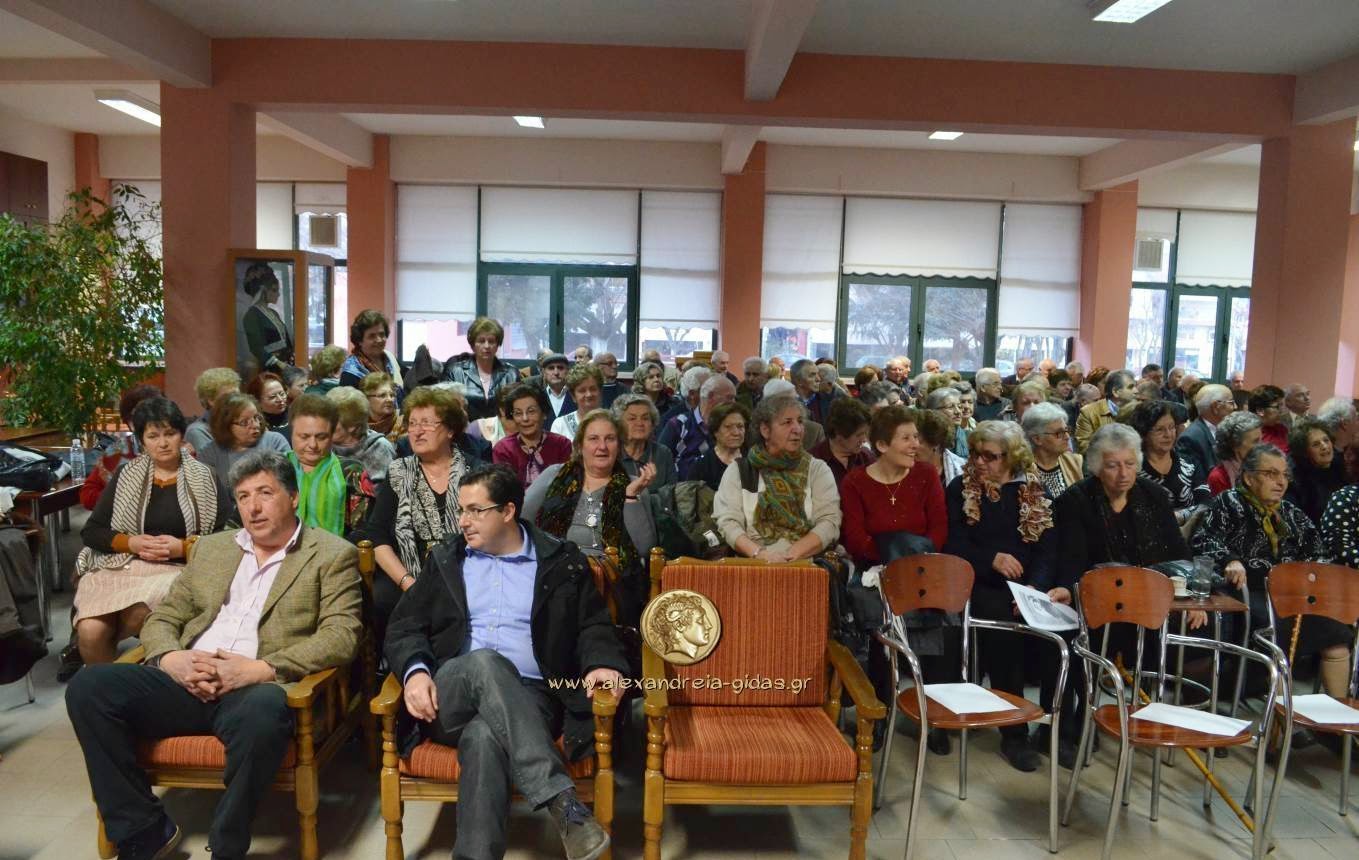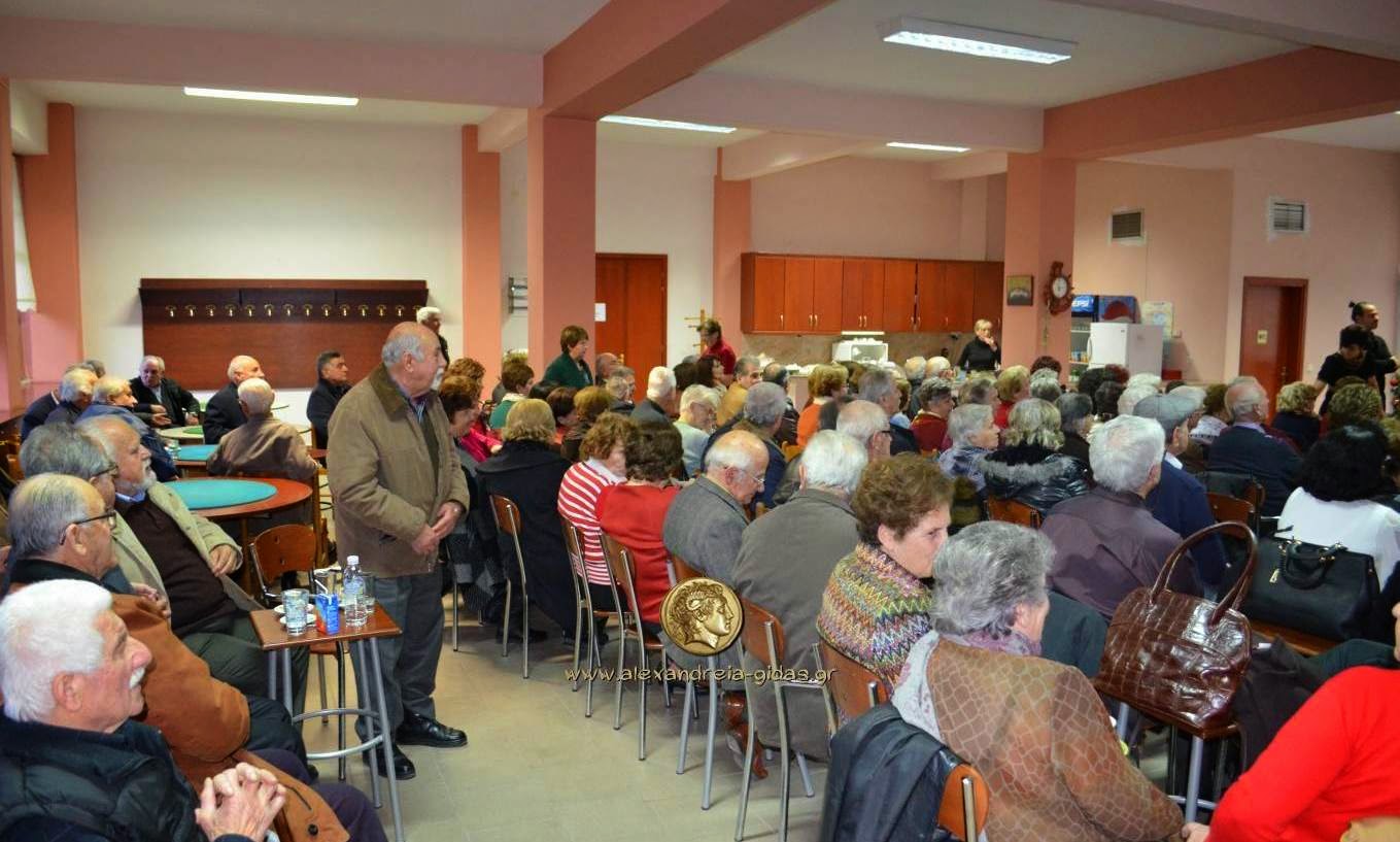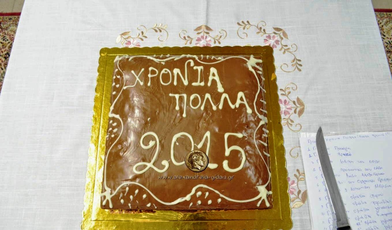 Στην κατάμεστη αίθουσα ο πρόεδρος του Οργανισμού Σάκης Παντόπουλος ευχήθηκε καλή χρονιά με υγεία και χαρές για το 2015 ενώ την εκδήλωση ομόρφυνε η χορωδία του ΚΑΠΗ. Στην κοπή πίτας και ο πρόεδρος του δημοτικού συμβουλίου Αλεξάνδρειας Νίκος Μπρουσκέλης καθώς και ο αντιπρόεδρος του ΚΑΠΗ Αλεξάνδρειας Στέφανος Γκιουρτζής.