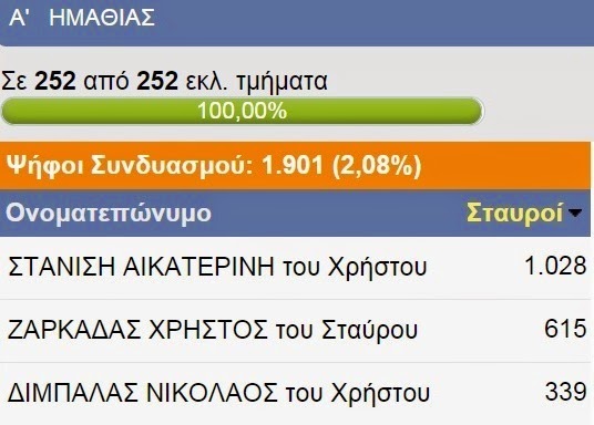 .jpg&container=blogger&gadget=a&rewriteMime=image%2F*) Ανέλπιστα καλά τα πήγε η Τελεία του Απόστολου Γκλέτσου στον νομό Ημαθίας. Η Τελεία αναδείχθηκε 9η δύναμη στον νομό μας συγκεντρώνοντας συνολικά… 1.901 σταυρούς προτίμησης.