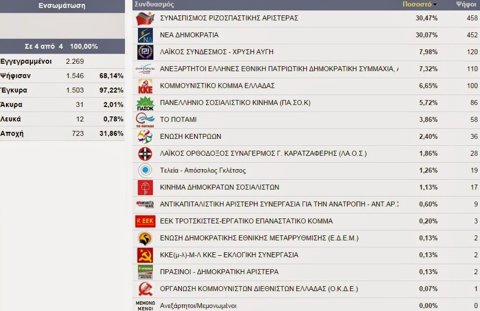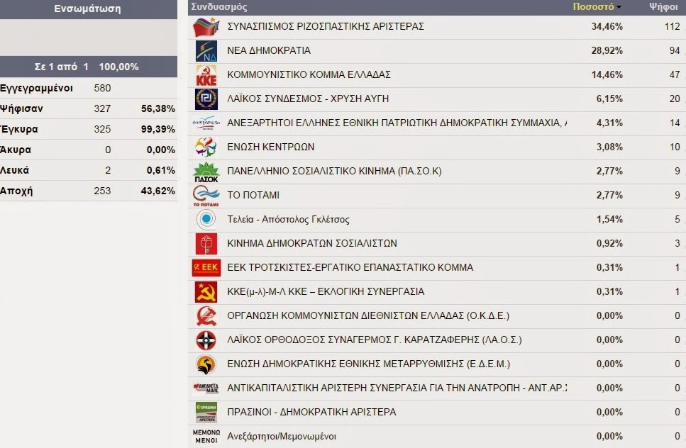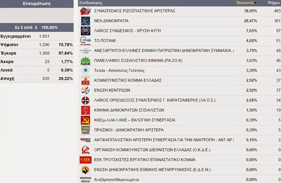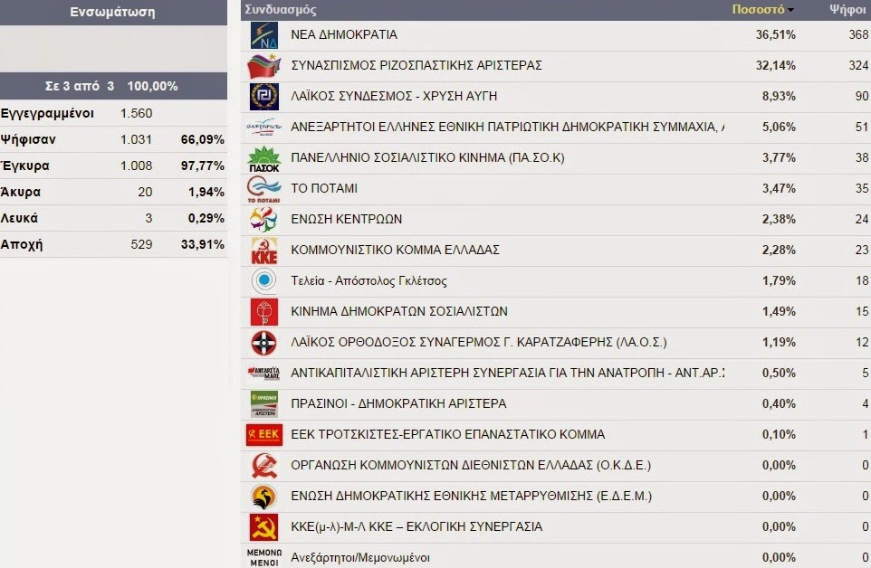 Δείτε αναλυτικά τι ψήφισαν Πλατύ, Άραχος, Κλειδί, Κορυφή, Λιανοβέργι, Παλαιοχώρι, Πλάτανος, Πρασινάδα και Τρίκαλα: