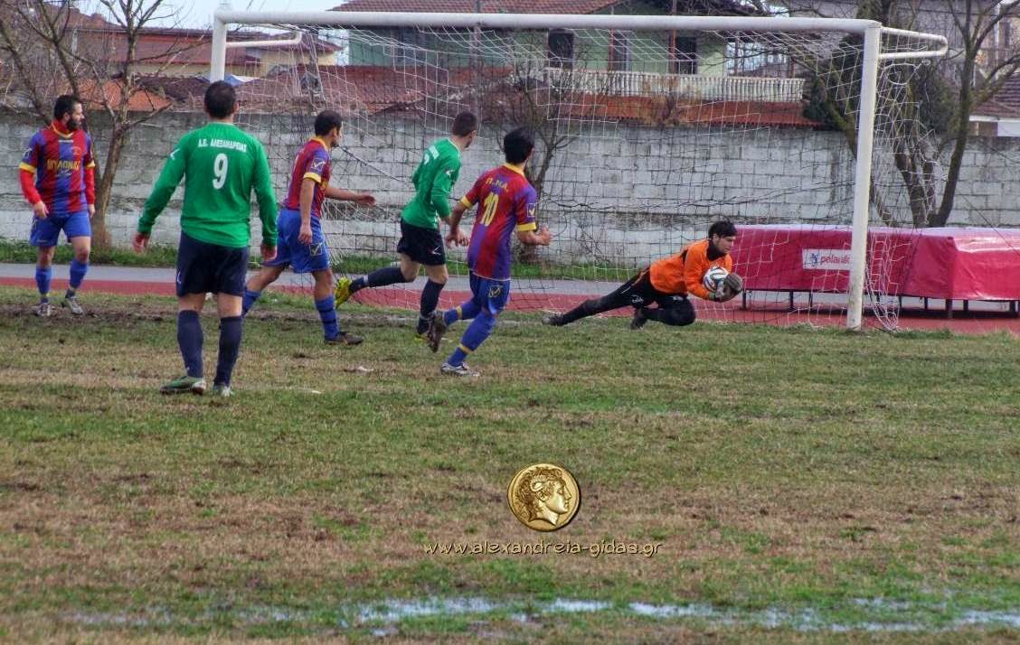 Το σκορ άνοιξε ο καλύτερος ποδοσφαιριστής των φιλοξενούμενων Δερμιτζόγλου στο 15΄(0-1). Ο Μόσχος ισοφάρισε για την Αλεξάνδρεια στο 16΄. Στο 23΄ εκ νέου ο Δερμιτζόγλου έδωσε το προβάδισμα στην ομάδα του Αράχου για να ισοφαρίσει ο Λίτσι στο 38΄ σε 2-2. Στο 44΄ ο Δερμιτζόγλου έβαλε τον Άραχο και πάλι μπροστά στο σκορ με 2-3 και ο Ζερδαλής ένα λεπτό αργότερα ισοφάρισε για την Αλεξάνδρεια.