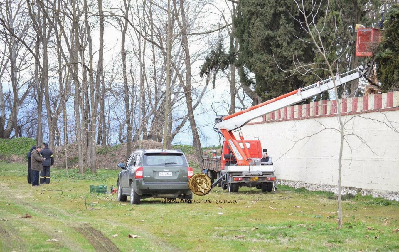 Στο σημείο βρέθηκαν το πρωί της Δευτέρας 2 Φεβρουαρίου ο αντιδήμαρχος Αλεξάνδρειας Σωτήρης Τόκας και η πυροσβεστική υπηρεσία Αλεξάνδρειας με επικεφαλής τον διοικητή του πυροσβεστικού τμήματος Γιάννη Αμανατίδη.