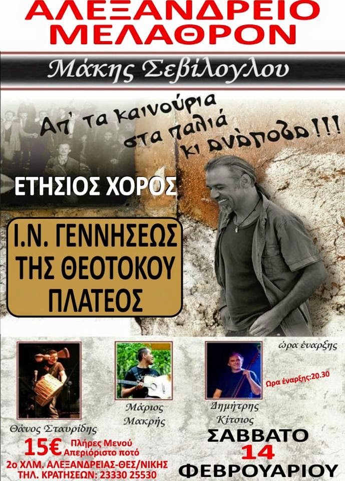 To Σάββατο 14 Φεβρουαρίου ο Ιερός Ναός Γεννήσεως της Θεοτόκου Πλατέος διοργανώνει τον ετήσιο χορό του στο ΑΛΕΞΑΝΔΡΕΙΟ ΜΕΛΑΘΡΟΝ.